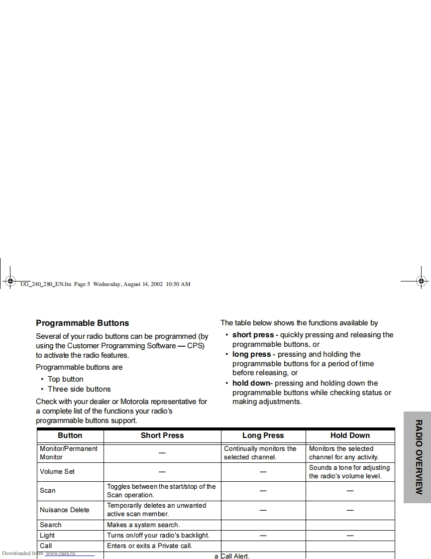 Motorola-GP280用户使用操作说明书手册找手册网31天前发布关注私信3.52MB46页038Motorola-GP280用户使用操作说明书手册此内容为付费资源,请付费后查看¥19¥21黄金会员免费钻石会员免费登录购买付费资源 第1页 / 共46页 第2页 / 共46页 第3页 / 共46页 第4页 / 共46页 第5页 / 共46页 第6页 / 共46页 第7页 / 共46页 第8页 / 共46页 第9页 / 共46页 第10页 / 共46页 试读已结束,还剩36页,您可下载完整版后进行离线阅读 THE END摩托罗拉 文本预览 MOTOROLAProfessional RadioGP240/GP280User Guide68P64120B16Issue:July 2002Downloaded from www.rads.ru 查看更多 收起部分 喜欢就支持一下吧收藏