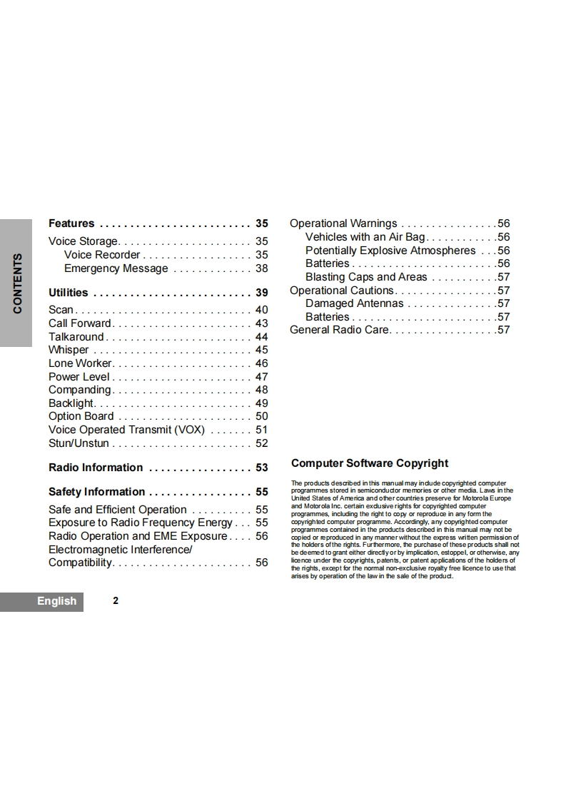 Motorola-GP380用户使用操作说明书手册找手册网32天前发布关注私信1.89MB60页029Motorola-GP380用户使用操作说明书手册此内容为付费资源,请付费后查看¥19¥21黄金会员免费钻石会员免费登录购买付费资源 第1页 / 共60页 第2页 / 共60页 第3页 / 共60页 第4页 / 共60页 第5页 / 共60页 第6页 / 共60页 第7页 / 共60页 第8页 / 共60页 第9页 / 共60页 第10页 / 共60页 试读已结束,还剩50页,您可下载完整版后进行离线阅读 THE END摩托罗拉 文本预览 MOTOROLAProfessional RadioGP380User Guide68P64110B28AIssue:June 2000Downloaded fom www.rads.ru 查看更多 收起部分 喜欢就支持一下吧收藏