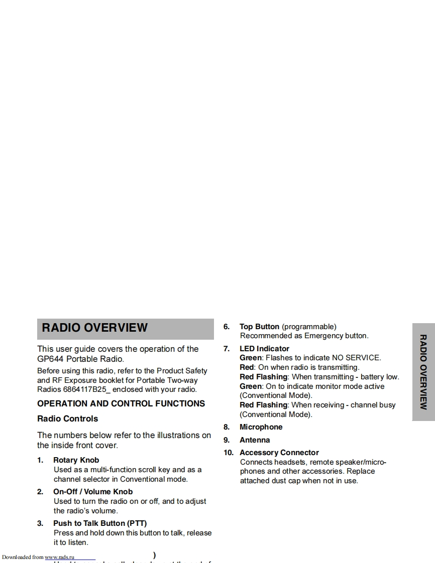 Motorola-GP644操作说明书手册找手册网32天前发布关注私信0.18MB24页045Motorola-GP644操作说明书手册此内容为付费资源,请付费后查看¥19¥21黄金会员免费钻石会员免费登录购买付费资源 第1页 / 共24页 第2页 / 共24页 第3页 / 共24页 第4页 / 共24页 第5页 / 共24页 第6页 / 共24页 第7页 / 共24页 第8页 / 共24页 第9页 / 共24页 第10页 / 共24页 试读已结束,还剩14页,您可下载完整版后进行离线阅读 THE END摩托罗拉 文本预览 MOTOROLAintelligence everywhereProfessional RadioGP644User Guide6866542D03Issue:April 2003Downioaded fromwow.rads.nu 查看更多 收起部分 喜欢就支持一下吧收藏