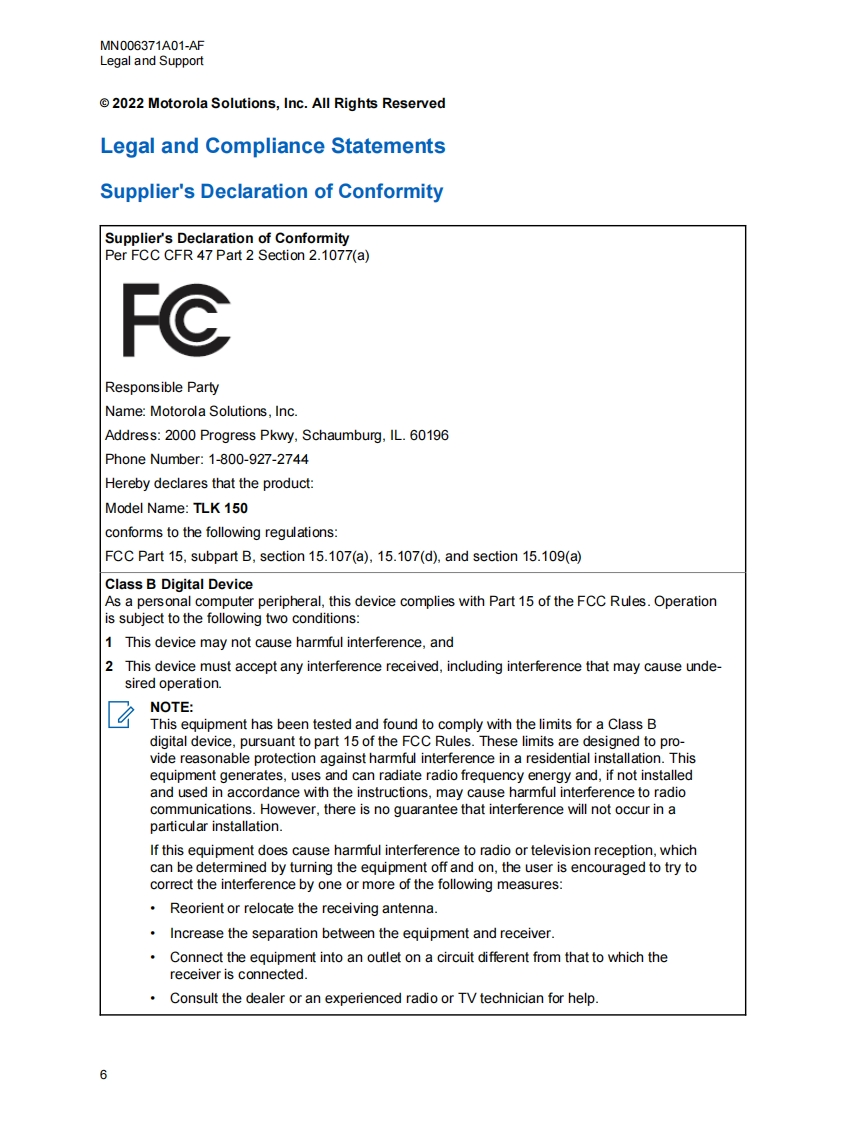 motorola-tlk-150-user-guide操作说明书手册找手册网32天前发布关注私信4.71MB209页048motorola-tlk-150-user-guide操作说明书手册此内容为付费资源,请付费后查看¥19¥21黄金会员免费钻石会员免费登录购买付费资源 第1页 / 共209页 第2页 / 共209页 第3页 / 共209页 第4页 / 共209页 第5页 / 共209页 第6页 / 共209页 第7页 / 共209页 第8页 / 共209页 第9页 / 共209页 第10页 / 共209页 试读已结束,还剩199页,您可下载完整版后进行离线阅读 THE END摩托罗拉 文本预览 WAVETM Mobile TLK 150User GuideSEPTEMBER 20222022 Motorola Solutions,Inc.All rights reservedMN006371A01-AF 查看更多 收起部分 喜欢就支持一下吧收藏