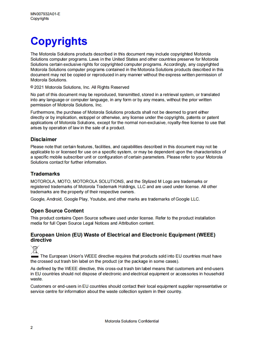 MOTOROLA-WAVE-PTX-DISPATCH-User-Guide操作说明书手册-10.0.2找手册网32天前发布关注私信11.36MB271页025MOTOROLA-WAVE-PTX-DISPATCH-User-Guide操作说明书手册-10.0.2此内容为付费资源,请付费后查看¥19¥21黄金会员免费钻石会员免费登录购买付费资源 第1页 / 共271页 第2页 / 共271页 第3页 / 共271页 第4页 / 共271页 第5页 / 共271页 第6页 / 共271页 第7页 / 共271页 第8页 / 共271页 第9页 / 共271页 第10页 / 共271页 试读已结束,还剩261页,您可下载完整版后进行离线阅读 THE END摩托罗拉 文本预览 WAVE PTXRelease 10.0.2Dispatch User GuideAPRIL 2021MN007932A01-E2021 Motorola Solutions,Inc.All rights reserved 查看更多 收起部分 喜欢就支持一下吧收藏