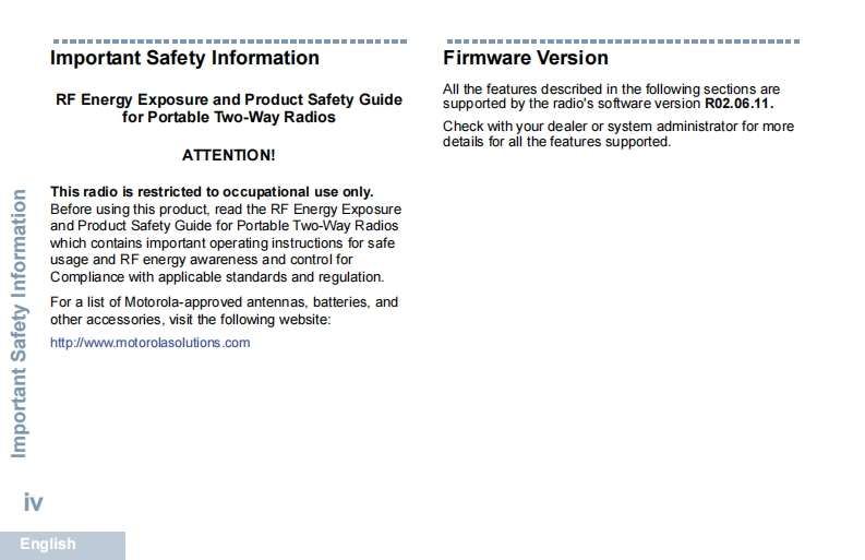 motoroladp3441e_操作说明书手册找手册网32天前发布关注私信5MB60页027motoroladp3441e_操作说明书手册此内容为付费资源,请付费后查看¥19¥21黄金会员免费钻石会员免费登录购买付费资源 第1页 / 共60页 第2页 / 共60页 第3页 / 共60页 第4页 / 共60页 第5页 / 共60页 第6页 / 共60页 第7页 / 共60页 第8页 / 共60页 第9页 / 共60页 第10页 / 共60页 试读已结束,还剩50页,您可下载完整版后进行离线阅读 THE END摩托罗拉 文本预览 PROFESSIONAL DIGITAL TWO-WAY RADIOS从MOTOTRBOTMDP3441NON DISPLAY PORTABLEUSER GUIDE从MOTOROLA 查看更多 收起部分 喜欢就支持一下吧收藏