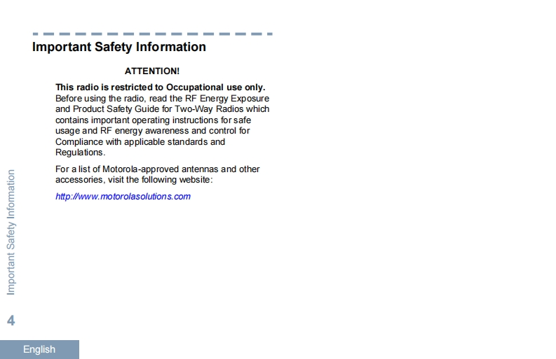 motorolasl1600_操作说明书手册找手册网31天前发布关注私信2.94MB444页051motorolasl1600_操作说明书手册此内容为付费资源,请付费后查看¥19¥21黄金会员免费钻石会员免费登录购买付费资源 第1页 / 共444页 第2页 / 共444页 第3页 / 共444页 第4页 / 共444页 第5页 / 共444页 第6页 / 共444页 第7页 / 共444页 第8页 / 共444页 第9页 / 共444页 第10页 / 共444页 试读已结束,还剩434页,您可下载完整版后进行离线阅读 THE END摩托罗拉 文本预览 MPROFESSIONAL DIGITAL TWO-WAY RADIOMOTOTRBOTMSL SERIESMOTOROLASL1600DISPLAY PORTABLE RADIOSUSER GUIDEende-DEfr-FRit-Tes-EStrplruar-EG 查看更多 收起部分 喜欢就支持一下吧收藏