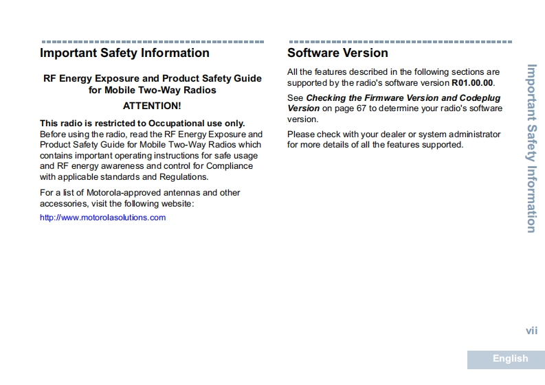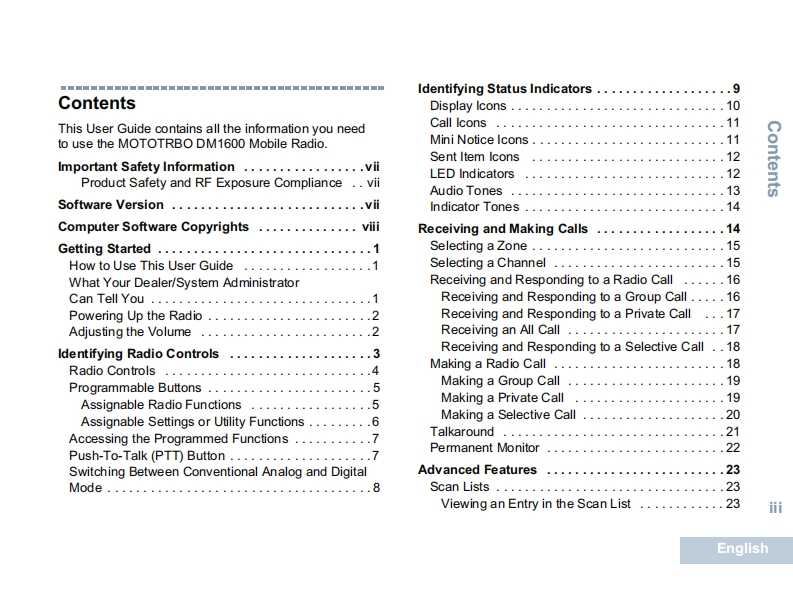 Motorola_DM-1600_使用说明书手册_2013找手册网32天前发布关注私信0.71MB93页048Motorola_DM-1600_使用说明书手册_2013此内容为付费资源,请付费后查看¥19¥21黄金会员免费钻石会员免费登录购买付费资源 第1页 / 共93页 第2页 / 共93页 第3页 / 共93页 第4页 / 共93页 第5页 / 共93页 第6页 / 共93页 第7页 / 共93页 第8页 / 共93页 第9页 / 共93页 第10页 / 共93页 试读已结束,还剩83页,您可下载完整版后进行离线阅读 THE END摩托罗拉 文本预览 PROFESSIONAL DIGITAL TWO-WAY RADIOSMOTOTRBOTM从DM1600ALPHANUMERIC DISPLAY MOBILEUSER GUIDEENDE)FRIT②MOTOROLAChannel1P14P2P3 P4 查看更多 收起部分 喜欢就支持一下吧收藏