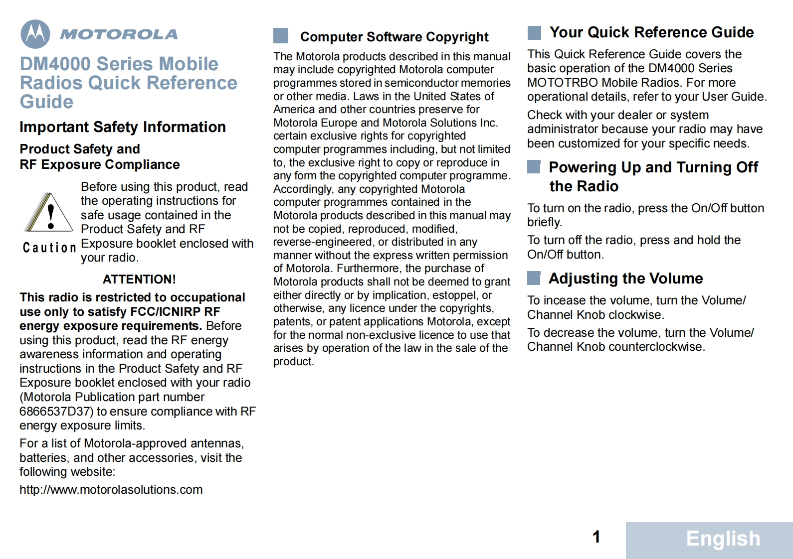 Motorola_DM-4000_series_quick_reference_使用操作指南_EN找手册网32天前发布关注私信5.77MB4页034Motorola_DM-4000_series_quick_reference_使用操作指南_EN此内容为付费资源,请付费后查看¥19¥21黄金会员免费钻石会员免费登录购买付费资源 第1页 / 共4页 第2页 / 共4页 第3页 / 共4页 第4页 / 共4页 已完成全部阅读,共4页 THE END摩托罗拉 文本预览 PROFESSIONAL DIGITAL TWO-WAY RADIO从MOTOTRBOTMDM4000 SERIESDIGITAL MOBLE RADIOSQUICK REFERENCE GUIDEENDEFRITESPRNLDASVSFHUGKTUcZPLRORUARCity ParksCnts Zone Scan Emrg80KSMOTOROLAP1 P2 P3 P45 查看更多 收起部分 喜欢就支持一下吧收藏