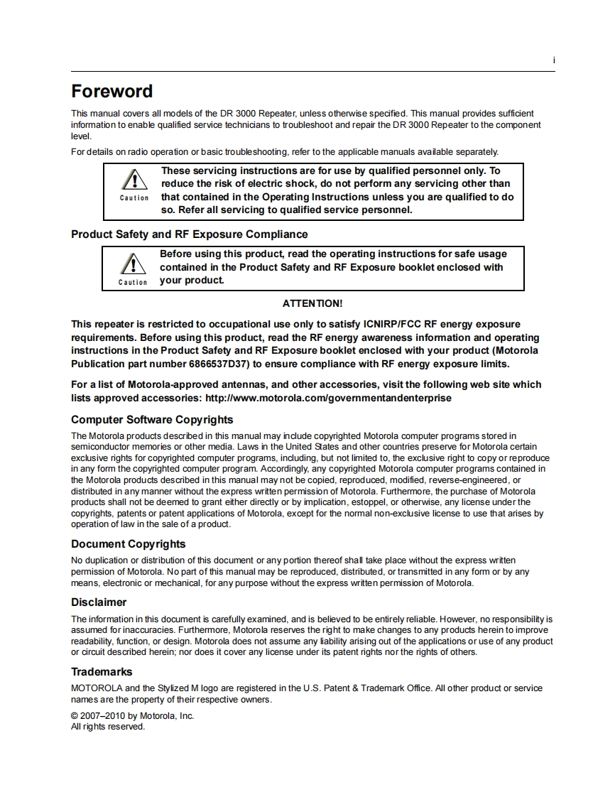 Motorola_DR-3000_detailed_维修说明书手册找手册网31天前发布关注私信21.08MB514页053Motorola_DR-3000_detailed_维修说明书手册此内容为付费资源,请付费后查看¥19¥21黄金会员免费钻石会员免费登录购买付费资源 第1页 / 共514页 第2页 / 共514页 第3页 / 共514页 第4页 / 共514页 第5页 / 共514页 第6页 / 共514页 第7页 / 共514页 第8页 / 共514页 第9页 / 共514页 第10页 / 共514页 试读已结束,还剩504页,您可下载完整版后进行离线阅读 THE END摩托罗拉 文本预览 PROFESSIONAL DIGITAL TWO-WAY RADIO SYSTEMMOTOTRBOTM从REPEATERDETAILED SERVICEMANUALDR 3000 REPEATER四©MOTOROLA8 查看更多 收起部分 喜欢就支持一下吧收藏