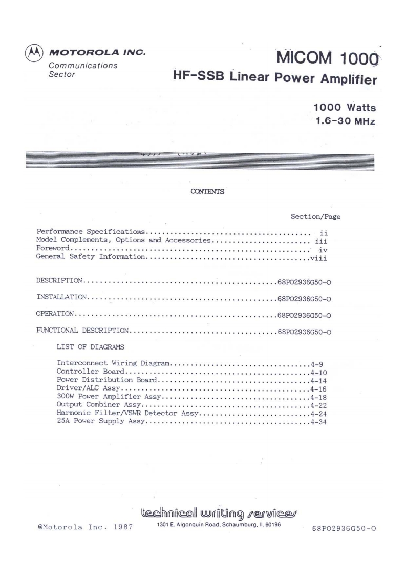 Motorola_MICOM_1000_user操作说明书手册找手册网32天前发布关注私信36.83MB87页042Motorola_MICOM_1000_user操作说明书手册此内容为付费资源,请付费后查看¥19¥21黄金会员免费钻石会员免费登录购买付费资源 第1页 / 共87页 第2页 / 共87页 第3页 / 共87页 第4页 / 共87页 第5页 / 共87页 第6页 / 共87页 第7页 / 共87页 第8页 / 共87页 第9页 / 共87页 第10页 / 共87页 试读已结束,还剩77页,您可下载完整版后进行离线阅读 THE END摩托罗拉 文本预览 MOTOROLAMICOM 1000Downloaded byHF-SSB Linear Power AmplifierRadioAmateur.EU1000 Watts1.6-30MHzInstruction Manual68P02936G50-0 查看更多 收起部分 喜欢就支持一下吧收藏