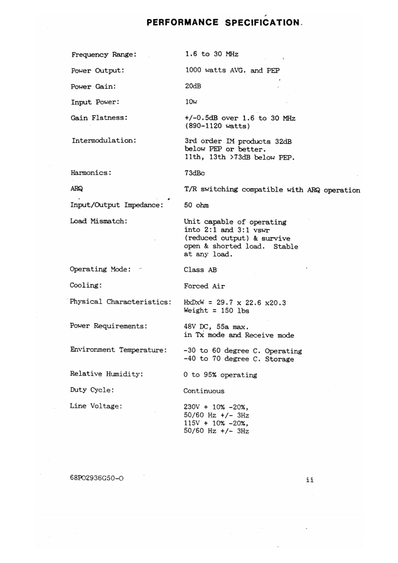 Motorola_MICOM_1000_使用说明书手册找手册网32天前发布关注私信37.10MB89页030Motorola_MICOM_1000_使用说明书手册此内容为付费资源,请付费后查看¥19¥21黄金会员免费钻石会员免费登录购买付费资源 第1页 / 共89页 第2页 / 共89页 第3页 / 共89页 第4页 / 共89页 第5页 / 共89页 第6页 / 共89页 第7页 / 共89页 第8页 / 共89页 第9页 / 共89页 第10页 / 共89页 试读已结束,还剩79页,您可下载完整版后进行离线阅读 THE END摩托罗拉 文本预览 MOTOROLAMICOM 1000Downloaded byHF-SSB Linear Power AmplifierRadioAmateur.EU1000 Watts1.6-30MHzInstruction Manual68P02936G50-0 查看更多 收起部分 喜欢就支持一下吧收藏