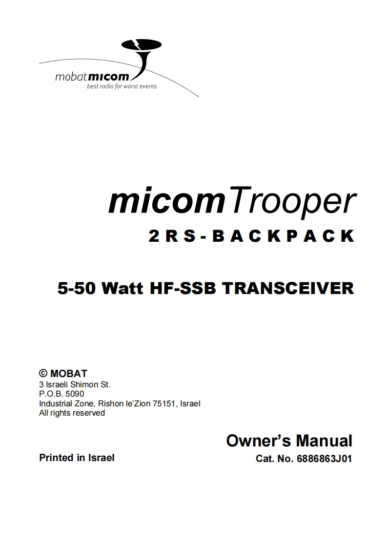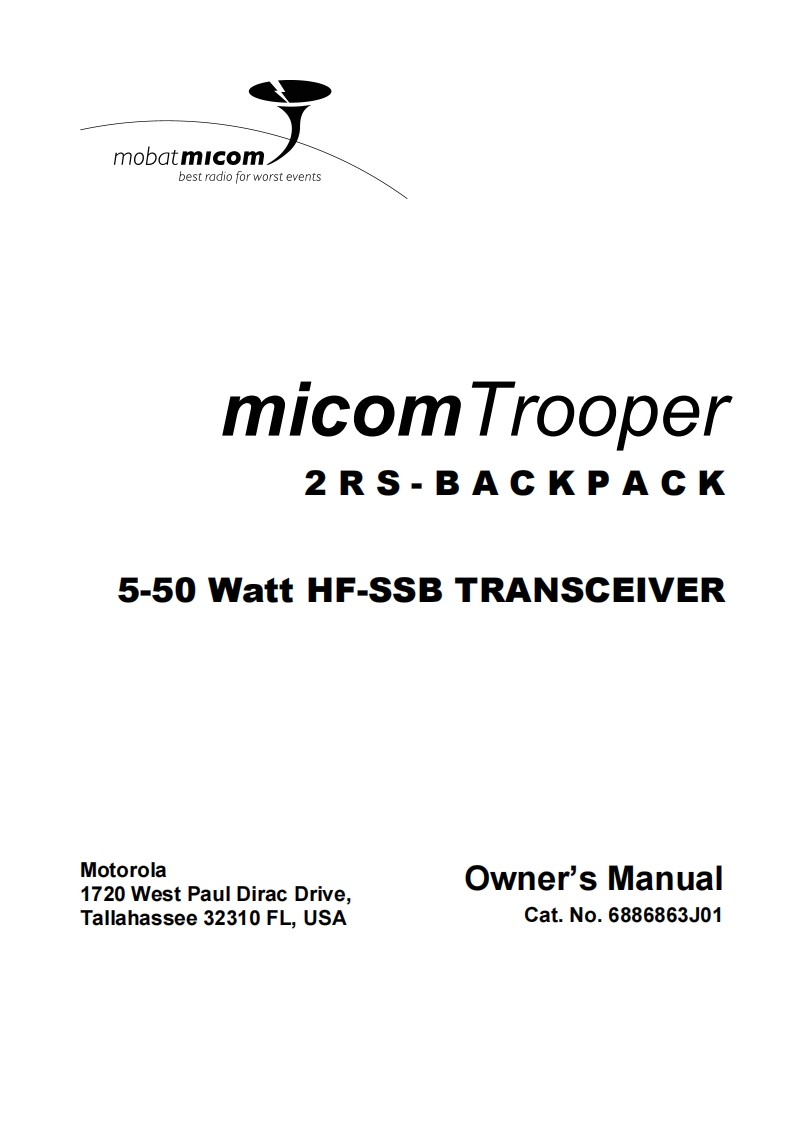 Motorola_Micom_Trooper_user操作说明书手册找手册网32天前发布关注私信8.52MB56页024Motorola_Micom_Trooper_user操作说明书手册此内容为付费资源,请付费后查看¥19¥21黄金会员免费钻石会员免费登录购买付费资源 第1页 / 共56页 第2页 / 共56页 第3页 / 共56页 第4页 / 共56页 第5页 / 共56页 第6页 / 共56页 第7页 / 共56页 第8页 / 共56页 第9页 / 共56页 第10页 / 共56页 试读已结束,还剩46页,您可下载完整版后进行离线阅读 THE END摩托罗拉 文本预览 MOTOROLAintelligence everywhereTMmicomTrooper2RS·BACKPACK5-50 Watt HF-SSB TRANSCEIVEROwner's Guidemobatmicombest radio for worst events6886863J01 查看更多 收起部分 喜欢就支持一下吧收藏