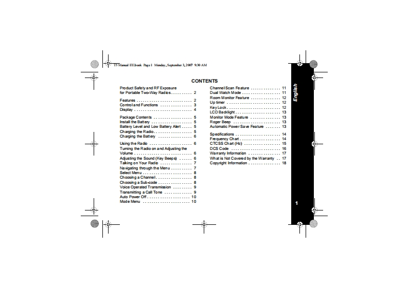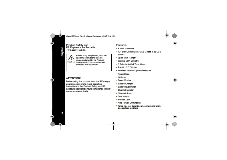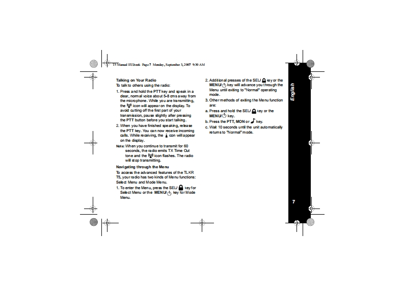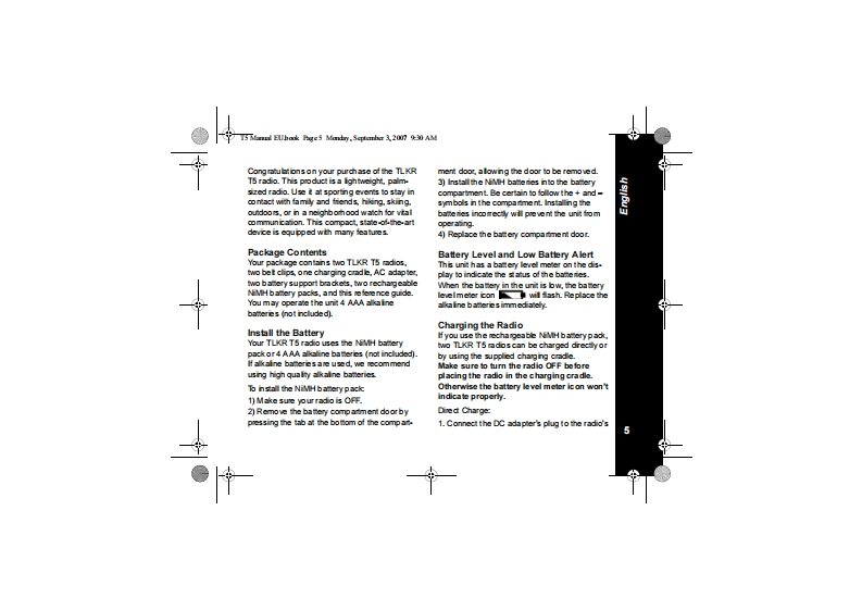MOTOROLATLKR T5 Owner's ManualManuel de Tutilisateur TLKR T5TLKR T5 BenutzerhandbuchManual del usuario de TLKR T5TLKR T5-Manuale per I'utenteManual do Propriatrio TLKR T5TLKR T5 GebruikershandleidingInstrukcja obslugi radiotelefonu TLKR T5TLKR T5 Kullanici KilavuzuTLKR T5 PyKoBORCr Bo Bnagenbua