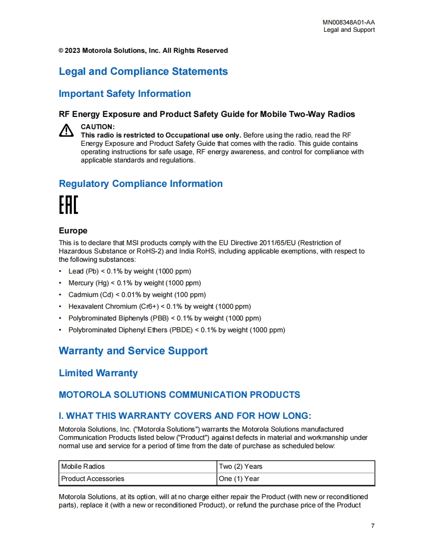 mototrbo-dm1000-series-user-guide操作说明书手册找手册网32天前发布关注私信3.09MB502页029mototrbo-dm1000-series-user-guide操作说明书手册此内容为付费资源,请付费后查看¥19¥21黄金会员免费钻石会员免费登录购买付费资源 第1页 / 共502页 第2页 / 共502页 第3页 / 共502页 第4页 / 共502页 第5页 / 共502页 第6页 / 共502页 第7页 / 共502页 第8页 / 共502页 第9页 / 共502页 第10页 / 共502页 试读已结束,还剩492页,您可下载完整版后进行离线阅读 THE END摩托罗拉 文本预览 MOTOTRBOTMPROFESSIONAL DIGITAL TWO-WAY RADIODM1600,DM1400 MobileRadio User GuideMARCH 20232023 Motorola Solutions,Inc.All rights reservedMN008348A01-AA 查看更多 收起部分 喜欢就支持一下吧收藏