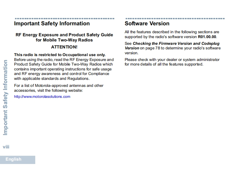mototrbo-dm2600-user-guide操作说明书手册找手册网32天前发布关注私信0.78MB114页038mototrbo-dm2600-user-guide操作说明书手册此内容为付费资源,请付费后查看¥19¥21黄金会员免费钻石会员免费登录购买付费资源 第1页 / 共114页 第2页 / 共114页 第3页 / 共114页 第4页 / 共114页 第5页 / 共114页 第6页 / 共114页 第7页 / 共114页 第8页 / 共114页 第9页 / 共114页 第10页 / 共114页 试读已结束,还剩104页,您可下载完整版后进行离线阅读 THE END摩托罗拉 文本预览 PROFESSIONAL DIGITAL TWO-WAY RADIOSMOTOTRBOTM从DM2600ALPHANUMERIC DISPLAY MOBILEUSER GUIDEENDE)FRT©MOTOROLAT tolelHokChannel1 查看更多 收起部分 喜欢就支持一下吧收藏