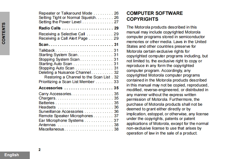 摩托罗拉cp150_cp200_user_guide使用说明书手册找手册网32天前发布关注私信2.40MB88页042摩托罗拉cp150_cp200_user_guide使用说明书手册此内容为付费资源,请付费后查看¥19¥21黄金会员免费钻石会员免费登录购买付费资源 第1页 / 共88页 第2页 / 共88页 第3页 / 共88页 第4页 / 共88页 第5页 / 共88页 第6页 / 共88页 第7页 / 共88页 第8页 / 共88页 第9页 / 共88页 第10页 / 共88页 试读已结束,还剩78页,您可下载完整版后进行离线阅读 THE END摩托罗拉 文本预览 MOTOROLAintelligence everywhereCP150TM/CP200TMCommercial SeriesTwo-Way Radio User GuideManuel de l'utilisateurde la radio bidirectionnelleRadiuy 查看更多 收起部分 喜欢就支持一下吧收藏