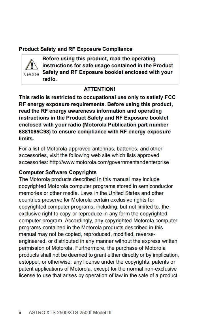 摩托罗拉XTS2500M3对讲机操作说明书手册找手册网32天前发布关注私信12.27MB154页035摩托罗拉XTS2500M3对讲机操作说明书手册此内容为付费资源,请付费后查看¥19¥21黄金会员免费钻石会员免费登录购买付费资源 第1页 / 共154页 第2页 / 共154页 第3页 / 共154页 第4页 / 共154页 第5页 / 共154页 第6页 / 共154页 第7页 / 共154页 第8页 / 共154页 第9页 / 共154页 第10页 / 共154页 试读已结束,还剩144页,您可下载完整版后进行离线阅读 THE END摩托罗拉 文本预览 ASTROXTSTM2500&XTSTM25001Model 3User GuideMOTOROLA 查看更多 收起部分 喜欢就支持一下吧收藏