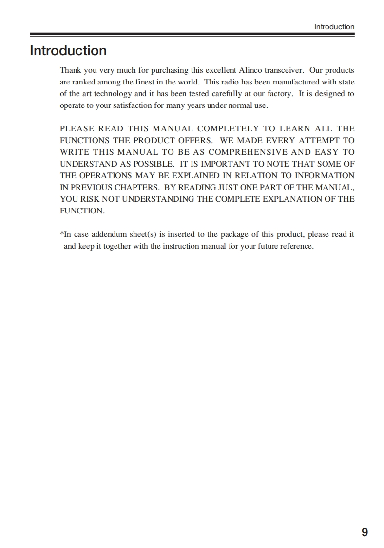 ALINGOVHF FM TRANSCEIVERDJ-175 T/E/TFHInstruction ManualALINCOm我ANSCETVER D小-175Thank you for purchasing your new Alinco transceiver.This instruction manual contains important safety andoperating instructions.Please read this manualcarefully before using the product and keep it for futurereference.ALINCO,INC.