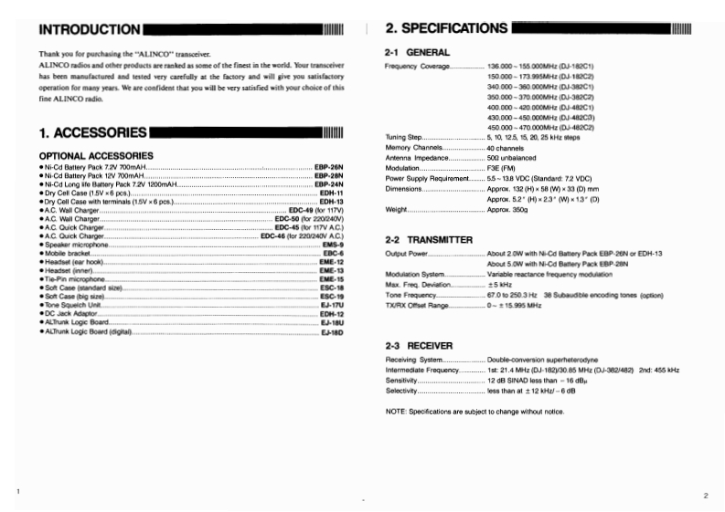 DALINCO11111111111111VHF FM HANDHELD TRANSCEIVERDJ-182UHF FM HANDHELD TRANSCEIVERDJ-382DALINCO ELECTRONICS INC.UHF FM HANDHELD TRANSCEIVERHeas Office:"TWIN 21 MiD Tower Dulding 23FUSA.ALNCO ELECTRONICSDJ-482Germany:ALINCO ELECTRONICS GMBHAll Hausen 34,D-50488 Frankrt am Main,Germany7918F:0898900786lay:AUINCO ELECTRONICS S.R.L.China:ALINCO ELECTRONICS (Bm omce)User's Manualng Diatict Beting ChinalllDALINCOELECTRONICS INCS0186A