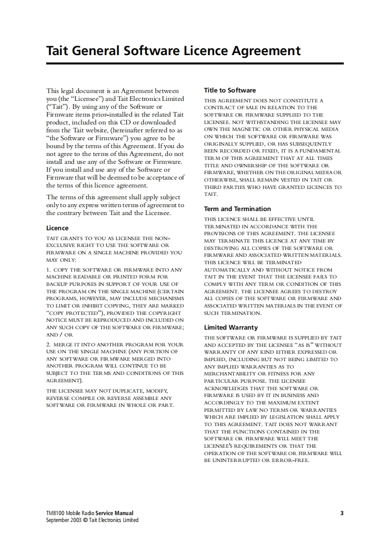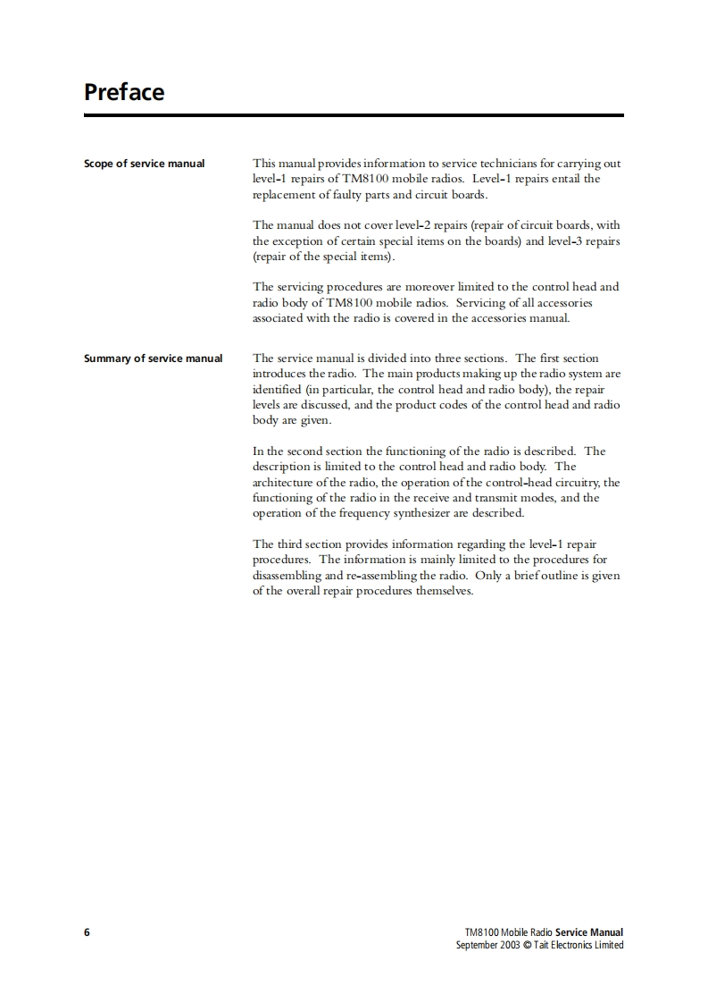 编号10:摩托罗拉MOTOROLA-MM8100-02-00-812维修手册找手册网32天前发布关注私信16.22MB62页043编号10:摩托罗拉MOTOROLA-MM8100-02-00-812维修手册此内容为付费资源,请付费后查看¥19¥21黄金会员免费钻石会员免费登录购买付费资源 第1页 / 共62页 第2页 / 共62页 第3页 / 共62页 第4页 / 共62页 第5页 / 共62页 第6页 / 共62页 第7页 / 共62页 第8页 / 共62页 第9页 / 共62页 第10页 / 共62页 试读已结束,还剩52页,您可下载完整版后进行离线阅读 THE END摩托罗拉 文本预览 TM8000 mobilesTM8100 Mobile RadioService Manual而radiocommunicationsMM8100-02-00-812 Version1.00September 2003 Tait Electronics Limited 查看更多 收起部分 喜欢就支持一下吧收藏