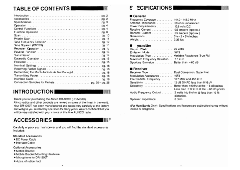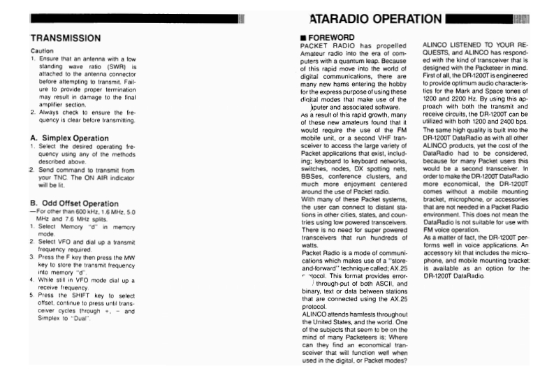 ALINCO1111111111111110DATARADIO●R-1200TINSTRUCTION MANUALALINCO ELECTRONICS INC.438 Amapola Avenue Unit 130.Torrance.CA 90501.U.S.A.Ph0me:(310)618-86161-1-1 Mishimae,Takatsuki city.Osaka 569.JapanYsonALINCODA-1200T0ALINCO ELECTRONICS INC.PS0145A