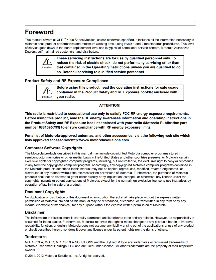 编号11:摩托罗拉MOTOROLA-XPR5350XPR5550Basic维修手册68009515001-B