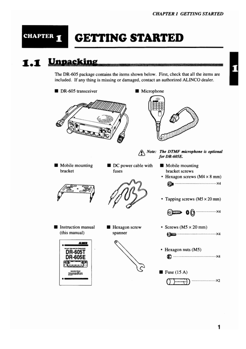 ALINCOVHF/UHF TWIN BAND FM TRANSCEIVERDR-605TDR-605E○T有F"28DR-605VHFUHFPUSHDOWN保MONCORInstruction ManualThank you for purchasing this ALINCO transceiver.To obtain optimum performance from this transceiver,read this instruction manual thoroughly,and keep it forfuture reference.