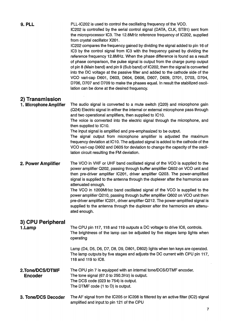 DJ-G7/T/EService ManualCONTENTSSPECIFICATIONSEXPLODED VIEWGeneral......21)Front View..........21,22Transmitter.…22)Rear View..........23,24Receiver….33)Bottom View.......25CIRCUIT DESCRIPTIONPARTS LIST1)Reception........4-7CPU Unit….26-292)Transmission....7MAIN Unit....30-373)CPU Peripheral.......7vco Unit......…384)CPU…8-11Mechanical Parts.....…39LED Unit.....39SEMICONDUCTOR DATAJACK Unit...…391)BU2152FS(XA0210)12RE1 Unit.......392)NJM2070M(XA1352).13RE2 Unit.....393)TA31136FN(XA0404).134)TK10931V(XA0666)..13ADJUSTMENT5)M62364FP(XA1293).14Adjustment Mode..40-466)TC3W53FU(XA0341).147)MB15F07SL(XA1033).15PC BOARD VIEW8)uPC2771TB(XA0953).15CPU Unit Side A….479)uPC2757TB(XA0976)..15CPU Unit Side B..4810)AT24C1024B(XA1351)..15MAIN Unit Side A ..4911)BU4830FVE(XA1009).16MAIN Unit Side B....512)S-812C32AMC(XA1353).16VCO Unit……5113)LM2681(XA1354).16JACK Unit.14)NJM2125F(XA0622)…17LED Unit.....…525215)TC75S51FU(XA1014).17RE Unit.....5316)LM12904PWR(XA1155).…1717)NJM2746RB1(XA1356)..17SCHEMATIC DIAGRAM.............5.4-5618)BA2902FV(XA1371)…1819)MM1332EF(XA1139)..18BLOCK DIAGRAM....5720)Transistor,Diode and LED Outline Drawings.....1921)LCD Connection (EL0063).........................20ALINGO.INC.
