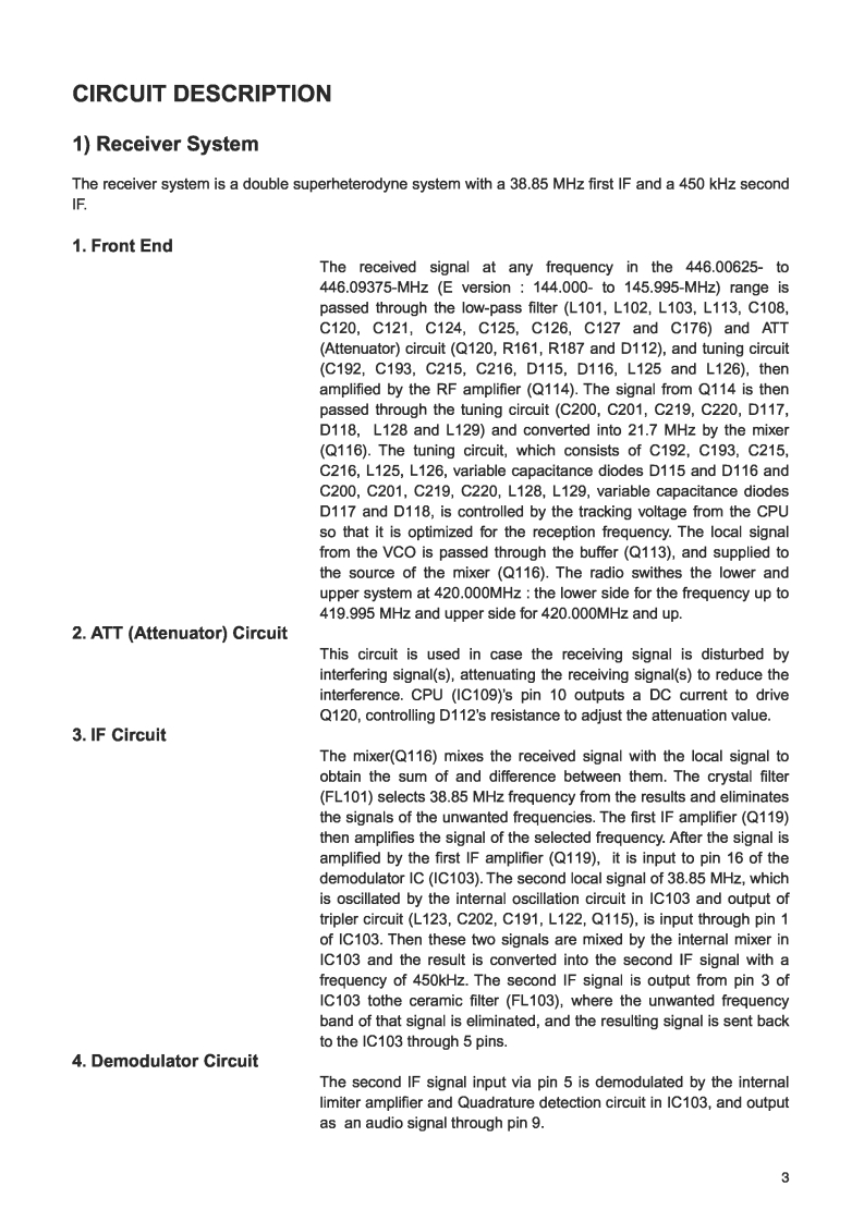 DJ-V446Service ManualCONTENTSSPECIFICATIONSEXPLODED VIEW1)Front View..16Transmitter........22)Rear View17PARTS LISTCIRCUIT DESCRIPTIONMAIN Unit.…18-231)Receiver System...........3.4Mechanical Unit.23,242)Transmitter System...........…4Packing Unit……243)PLL Synthesizer Circuit.....54)CPU&Peripheral Ciruits....................5,6ADJUSTMENT5)M38268MCA-077GP(XA1169)7-91)Required Test Equipment ......................25,262)Preparation..26SEMICONDUCTOR DATA3)Adjustment Mode.......27321)NMJ2070MT1(XA0210).104)Re-assembly.........322)S24CS64A01-J8T1G(XA1117).103)M62429FP/CF0J(XA1118).…PC BOARD VIEW4)LM2902PWR(XA1106)...11MAIN SIDE A........335)TA31136FN(EL)(XA0404)..12MAIN SIDE B..336)S80845CLNB-B66-T2G(XA1120..127)MB15E07SR(0XA1107)..13SCHEMATIC DIAGRAM....................348)XC6202P502MR(XA1119).149)Transistor,Diode and LED Outline Drawing.....15BLOCK DIAGRAM.......3510)LCD Connection(EL0059)..........................15ALINGO,INC.