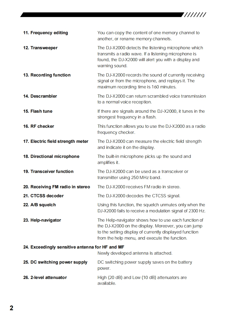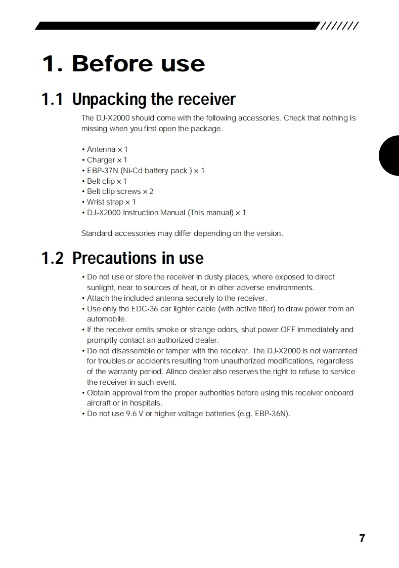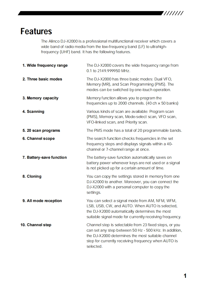 71111IIAC0WIDE RANGE SCANNING RECEIVERDJ-X2000Instruction Manual品2②②②②g3888)D②②2②MR MWALINGOThank you for purchasing the ALINCO8receiver.The DJ-X2000 instruction&芒感manual contains important safety andoperating instructions.Read this manualDJ-X20000carefully before using the product.