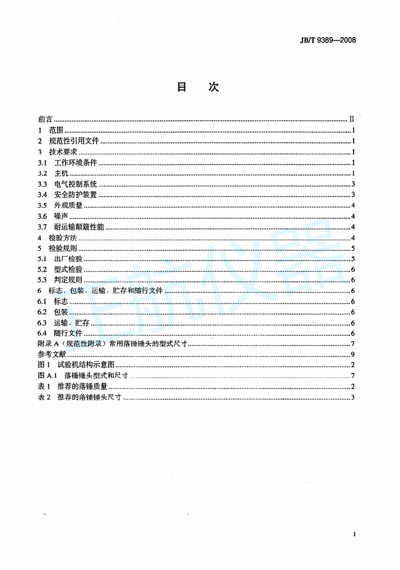 ICs19.060:77.040.10N72备案号:23319一2008中华人民共和国机械行业标准JB/T9389—2008非金属材料落锤式冲击试验机技术条件Specification for falling weight impact testing machinesused for non-metallic materials2008-03-12发布2008-09-01实施中华人民共和国国家发展和改革委员会发布