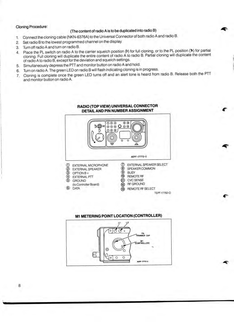 MOTOROLA“HT600E”SERIES“Handie-Talkie”Portable Radios438-470MHzSPECIFICATIONSGENERALTRANSMITTERRECEIVERFREQUENCY RANGE:438.470MHzRFOUTPUT-AUDIO OUTPUT:500mW at less thanNickel-cadmium5%distortionbattery:2.0W at9.6vdcPOWER SUPPLY:Nickel-cadmiumbatterySECI-F450kHz±1.5kHzMODULATION:Type 20KOF3E,FREQUENCY:measured at M1±5 kHz for100%BATTERY DRAIN-modulation at 1000Hzat 9.6Vdc(±4.0kH2min.)SENSITIVITY:0.35UV max.Standby:"44mAincluding PL(12 dB SINAD)】Standby with Scan:*52mAmodulation forStandby withPLmodels*36mANOISE SQUELCHBattery SaverNoise compensatedReceive:·149mASENSITIVITY:type,Programmable;PL MODULATION:Transmit:*825mAopens from.18uV±1 kHz max±500 Hz min'Add 8mA with Remote AntennaAdd 15mA with Remote Antenna3MHzAUDIOLess than 5%atSWITCHINGDISTORTION:1000Hz,3kHzBANDWIDTH:(no degradation)BATTERY LIFE:deviationBased on 5%transmit,20%receive with ratedFREQUENCY STABILITY:af output,75%standby with Battery Saver andSWITCHING17MHz±.0005%trom-10℃to+50CNickel-Cadmium battery,8.7 hours/chargeBANDWIDTH:(no degradation)(+25℃ret)DIMENSIONS:FREQUENCY STABILITY:USEABLEWIDTH:2.70(66.8mmj±.0005%from-10℃to+50CBANDWIDTH:±5kHzDEPTH:1.55(39.4mm)(+25Cref.)HEIGHT:Radio Only3.89(99.0mm)SPURIOUS HARMONICSPURIOUS FREQUENCYRadio with BatteryFREQUENCIES:0.25uWREJECTION:>60dBHigh Capacity6.98(177.3mmjFMNOISE:MAGE REJECTION:>60dBWEIGHT:At least 45dB below 3.0kHz deviationRadio Only13.50z(383g)at 1000HzSELECTIVITYRadio with Battery (Nickel-Cadmium)(CEPT):>70dBLow Capacity19.00z(539g)AUDIO RESPONSE:Medium Capacity21.60z(612g)+1.-3dB from 6dB/octave pre-emphasisHigh Capacity24.102(684gcharacteristic from 300-3000HzINTERMODULATION:>70dBSpecifications Subject To Change Without NoticeNOTE:ALL BATTERIES MUST BE CHARGED PRIOR TO USE.USE OF CHEMICALS(DETERGENTS.ALCOHOL,AEROSOL SPRAY,PETROLEUM PRODUCTS)MAY BE HARMFUL AND DAMAGE THE RADIO HOUSING.WERECOMMEND A MILD DISHWASHING SOAP FOR CLEANING THE EXTERIOR OF THE PRODUCT..O-RING SEALS MUST BE PROPERLY LUBRICATED AND ASSEMBLED TO INSURE CONFORMANCE TO MIL-810D SPECIFICATIONS FOR WATER INTRUSION.Service Manual68P81050C45-0