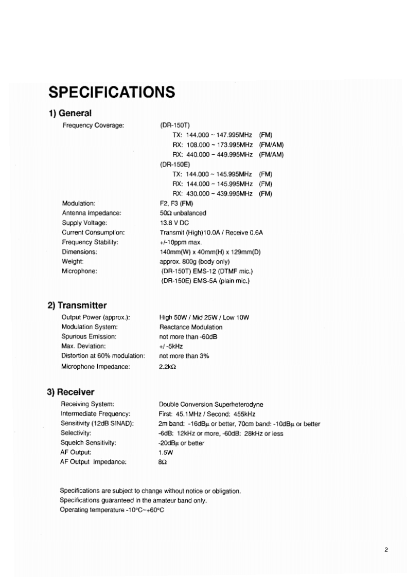 DR-150T/EService ManualCONTENTS●SPECIFICATIONS●PARTS LIST1)General....CPU Unit.20212)Transmitter......42MAIN Unit.......22-253)Receiver...VCO Unit..26●CIRCUIT DESCRIPTIONSP Unit.n261)Receiver System...,3MIC Unit......272)Transmitter System..3-4Mechanical Parts.273)PLL Circuit.4Others..284)Terminal Function of Microprocessor...........5-7Packing....285)Terminal Function of 4094.8Mic.Hanger Unit...28●SEMICONDUCTOR DATAE20u..281)AT24C08-10S-2.7-●ADJUSTMENT2)BU4094BF.91)Required Test Equ pment.....293)MB1504LPF-G-BND-TF2)Adjustment for DR-150T/E.304)NJM2902MT1).03)Adjustment Points...315)NJM7809A..114)Adjustment Quick Reference.316)RH5VA45AA-T1....●VOLTAGE TABLE7刀TA75S01f111)Transistor,FET.328)TA7806F(TE16L).4.112)Diode.....*.339)S-AV173C03310)TC35305FTP1).134)1C.nn3411)TK10930VTL.14●PC BOARD VIEW12)TC4W66FU.151)MIC Unit Side A.13)uPC1241H152)MIC Unit Side B.3514)Transistor,Diode and LED Outfine Drawings...163)VCO Unit Side A...3515)LCD Connection..174)CPU Unit Side A..36●EXPLODED VIEW5)CPU Unit Side B...361)Bottom View.-.186)MAIN Unit Side A..372)LCD View..18刀MAIN Unit Side B383)Top.Front View..19●BLOCK DIAGRAM39●CIRCUIT DIAGRAM1)MiC Unit......402)VCO Unit......413)Main Unit424)CPU Unit....445)EJ20u Unit.....45ALINCO,INC