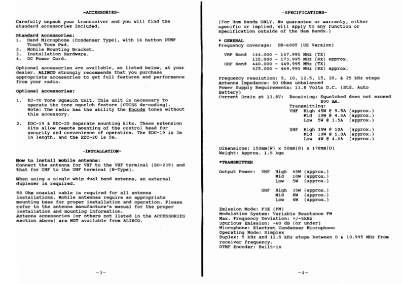 Alinco_DR-600_使用说明书手册找手册网15小时前发布关注私信0.25MB22页035Alinco_DR-600_使用说明书手册此内容为付费资源,请付费后查看¥19¥21黄金会员免费钻石会员免费立即购买您当前未登录!建议登陆后购买,可保存购买订单付费资源 第1页 / 共22页 第2页 / 共22页 第3页 / 共22页 第4页 / 共22页 第5页 / 共22页 第6页 / 共22页 第7页 / 共22页 第8页 / 共22页 第9页 / 共22页 第10页 / 共22页 试读已结束,还剩12页,您可下载完整版后进行离线阅读 THE ENDAlinco 文本预览 DNALINCO11II110Twin Band(2M/70cm)Remote Control TransceiverDR-600TAdvanced Edition OPERATOR'S MANUALALINCO ELECTRONICS INC.UAALINCO ELECTRONCS OMBHA4C0 FLECTRONCS春.L111111ALINCOOtCO可ELECTRONICS INCP90165 查看更多 收起部分 喜欢就支持一下吧收藏