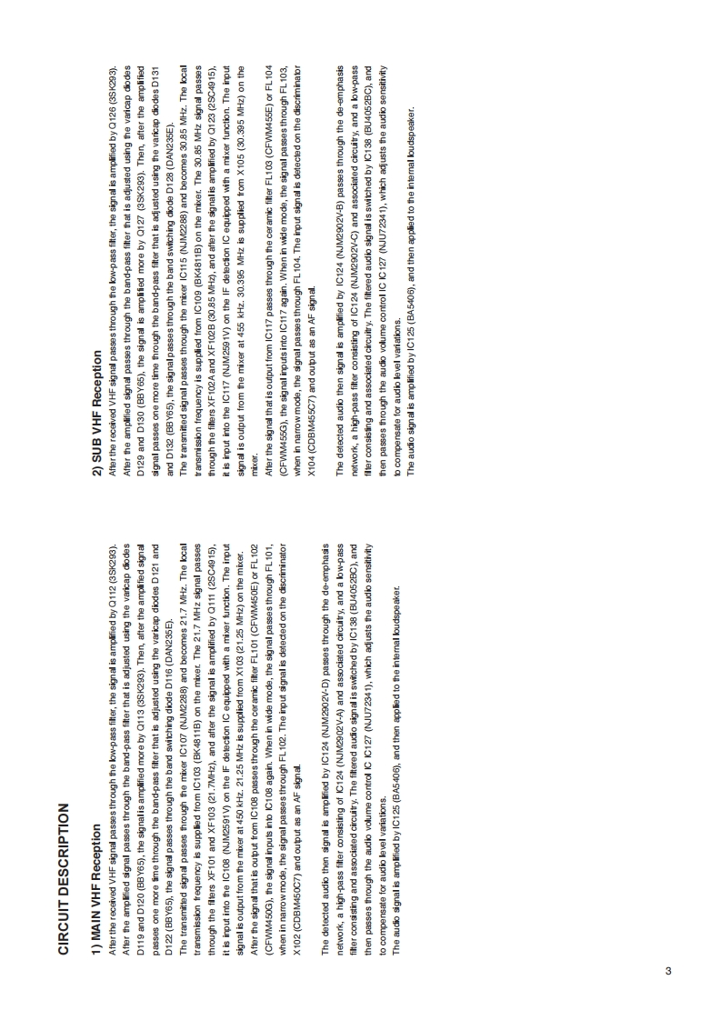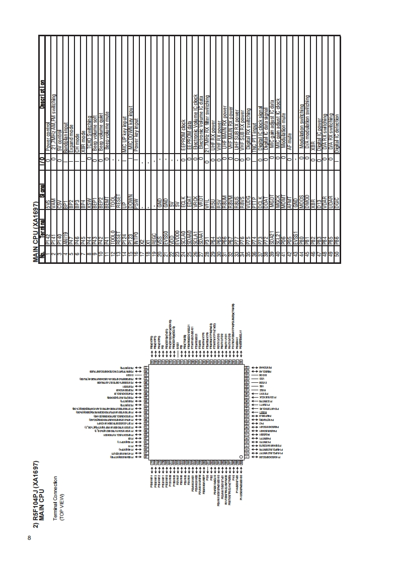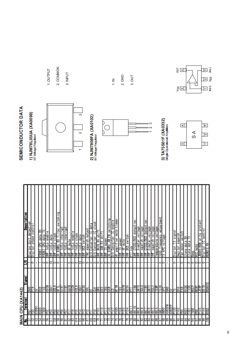DR-735 T/E/TAService ManualCONTENTSSPECIFICATIONSGeneral.18NJM2288(XA1694).,12Transmitter219)NJU72341(XA1695).12Receiver...20)BH2221V(XA1696).1221)HT16C24(XA1705).13CIRCUIT DESCRIPTION22RA60H4047M1(XA1706).131)MAIN VHF Reception....323)BR24G1MFXA1715).132)SUB VHF Reception24)Transistor,Diode and LED Outline Drawing............143)MAIN UHF Reception.25)LCD Connection (EL0064)...................144)SUB UHF Reception5)VN(VHF-VHF)Dual Reception5EXPLODED VIEW6)U/U(UHF-UHF)Dual Reception1)Front View15,1657)MAIN VHF Squelch Control2)Main Side17.1958)SUB VHF Squelch Control59)MAIN UHF Squelch Control5PARTS LISTFRONT Unit..10)SUB UHF Squelch Control20-21MAIN Unit...22-3011)Transmit Signal Path....12)VHF Transmit Signal PathSPEAKER Unit.31MECHANICAL Unit.13)UHF Transmit Signal Path3114)VHF TX APC Circuit...PACKING Unit.3115)UHF TX APC Circuit.ADJUSTMENT16)VHF PTT circuit.17)UHF PTT circuit......61)Required Test Equipmente18)VHF 1 chip IC......62)Adjustment Spot.....3319)UHF 1 chip IC....3)Connection Diagram620)Power-on Circuit.4)UHF TX Adjustment Specification.3465)UHF RX-R Adjustment Specification34CPU I/O DATA6)VHF RX-R Adjustment Specification61)R5F104FF (XA1724)FRONT CPU7)VHF TX Adjustment Specification352)R5F104PJ(XA1697)MAIN CPU...............8-98)VHF RX-L Adjustment Specification369)UHF RXL Adjustment Specification...................36SEMICONDUCTOR DATA10)UHF TX Test Specification.............371)NJM78L05UA(XA0098).…911)VHF TX Test Specification...............3712)LEFT RX Test Specification2)NJM7808FA(XA0102)9813)RIGHT RX Test Specification3)TA75S01F(XA0348)93814)X BAND Test Specification.394)TC4W53FU(XA1106)5)NJM2904V(XA0573)16)NJM2902V(XA0596)10PC BOARD VIEW7S-80845 ALMP (XA0620)….10FRONT TOP SIDE...1041FRONT MIDDLE SIDE48)NJM78M05DL1A(XA0947).10FRONT BOTTOM SIDE9)RA60H1317M1(XA1108)103MAIN TOP SIDE...4410)SN74LV4051A(XA1194).MAIN MIDDLE SIDE4511)BU4052BCFV(XA1229).11MAIN BOTTOM SIDE4612)TAR5S33U(XA1277).1113)BD1020HFV(XA133511SCHEMATIC DIAGRAM14)NJM2591V(XA1391).11FRONT Unit..........4715)R1EX24008A(XA1417)11MAIN Unit..4816)BA5406(XA1519)1217)BK4811B(XA1625)12BLOCK DIAGRAM.49ALINGO.INC.