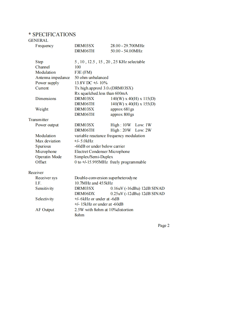 DR-M03SXService ManualDR-MO6THCONTENTSSPECIFICATIONSPARTS LAST1)General2CPU Unit222)Transmitter2MAIN Unit22-243)Receiver2VCO Unit24CIRCUIT DESCRIPTIONSP Unit51)Receiver System3Mechanical Parts252)Transmitter SystemPacking..253)PLL Circuit4DRM03 PA Unit24)Terminal Function of Microprocessor575)Terminal Connection of Microprocessor8ADJUSTMENTSEMICONDUCTOR DATA1)Required Test Equipment.271)AK234192)Adjustment for DR-M06/0328-292)AN78L05M103)Adjustment Points303)AN8010M104)Adjustment Quick Reference304)BU4052BF105)LR40872111CIRCUIT DIAGRAM6)M5218FP113)Main Unit327)M56760FP124)Main Unit338)MC7808CT135)CPU Unit349)RH5VA32AA-TI1310)RH5VA45AA-TI13PC BOARD VIEW11)M57735141)Main Unit Side A3512)TK10487MTR152)Main Unit Side B3613)AT24C02N-10SI-2.7153)CPU Unit Side A.3714)AT24C08-10SI-2.7154)CPU Unit Side B715)uPC1241H165)VCO Unit Side A3816)Transistor,Diode and LED Outline Drawings 166)VCO Unit Side B17)LCD Connection17EXPLODED VIEW1)Bottom View182)LCD View183)Top,Front View 1194)Top,Front View 2205)DRM03 PA UNIT21VERSION TABLE21ALINCO INCORPORATEDTWIN 21 M.I.D.TOWER BUILDING 23F,1-61,2-CHOME,SHIROMI CHUO-KU,OSAKA,540-8580 JAPANTel(816-6946-8150fax(81)6-6946-8175e-mail:export@alinco.co.jp