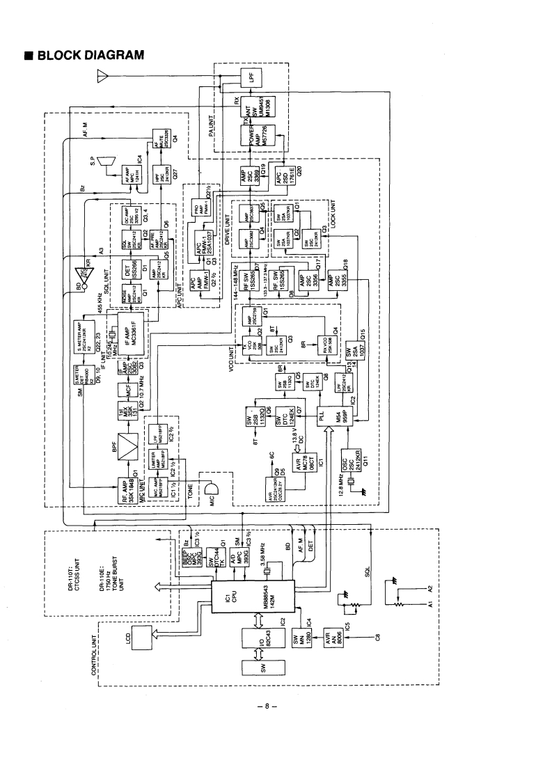 ALINCOVHF FM TRANSCEIVERDR-112 T/EService Manual1Index●PARTS LIST25CABINET PARTS LOCATION........................................●ADJUSTMENT1>●BLOCK DIAGRAM.:1●MAIN PC BOARDS9,10●CONTROL PC BOARDS11●144VC0PCB0ARDS...·TONE SQUELCH PC BOARD13·TONE BURST PC BOARDS14●APC PC BOARDS.14LI BAT PC BOARDS15●DRIVE PC BOARDS.1LOCK SW PC BOARDS15●IF PC BOARDS,…1●SQL PC BOARDS.16●MIC PC BOARDS,...,,…1●SPECIFICATIONS...Back CoverALINCO ELECTRONICS INC.