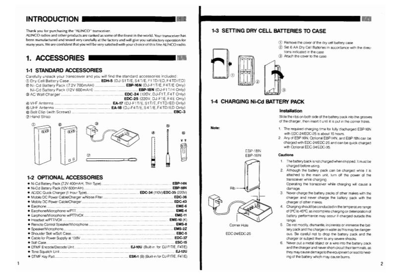 DNALINCO411110VHF FM HANDHELD TRANSCEIVERDJ-F1T/E/HDJ-SIT/E DJ-FITD/EDDRY CELL PACK UNIT BATTERIES NOT INCLUDEDUHF FM HANDHELD TRANSCEIVERDJ-F4T/E/HALINCO ELECTRONICS INC.438 Amapola Avenue Unt 130.Torrance.CA 90501.USAPhone310)61886t6DJ-S4T/E DJ-F4TD/ED1-1-1 Mishimae Takatsuki city.Osaka 569.JapanDRY CELL PACK UNIT BATTERIES NOT INCLUDEDINSTRUCTION MANUALCaution:Thal version does not have the connector for DTMF unit and DTMF function isnot available.ALINCOLaD.日ECTRONCS INCPS012C