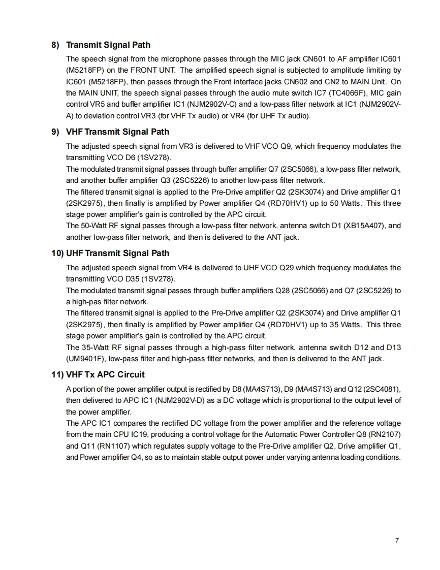 DR-620Service ManualCONTENTSSPECIFICATONS15)BR24C64F-E2XA0669)...151)GENERAL.216)LC75884WXA0899)..162)TRANSMTTER.217)M51132FP(XA0900)173)RECEIVER318)M30620 FCAGP (XA0913XA0949)..….17-19CIRCUIT DESCRIPTION19)M38503M2H667FPXA0914)…20-211)VHF Reception.420)M64076AGP(XA0915)..222)UHF Reception.......521)S-816A50AMC(XA0925.233)FM Reception..522)NJM78M05DL1A(XA0947)...234)VN (VHF-VHF)Dual Reception..623)Transistor,Diode,and LED Outline Drawings....24~255)U/U (UHF-UHF)Dual Reception..........624)LCD Connection26-276)VHF Squelch Control6EXPLODED VIEW7)UHF Squelch Control....61)Front View.......8)Transmit Signal Path.......2)Bottom View299)VHF Transmit Signal PathPARTS LIST10)UHF Transmit Signal PathFront Unit...................30-3111)VHF Tx APC Circuit .....LED Unit......3112)UHF Tx APC Circuit8Main13))VHF PTT Circuit.…….8Mechanical Parts.4214)UHF PTT Circuit.8Packing Parts.....4215)VHF PLL.....8Accessories(Screw Set)4216)UHF PLL....9ADJUSTMENT17)Power-on Circuit.....91)Adjustment Spot.....43SEMICONDUCTOR DATA2)Adjustment Mode.....441)M5218FPXA0068)103)VHF Adjustment Specification.........452)NJM78LO5UA(XA0098)104)UHF Adjustment Specification ....463)NJM7808FAXA0102)….105)VHF Test Specification474)TC4S66F(XA0115)116)UHF Test Specification……485)AN8010M(XA0119)11PC BOARD VIEW6)BU4052BFXA0236)111)Front Side A497)TA75S01F(XA033222)Front Side B…498)TC4W53FUXA0348)…123)Main SideA..509)TA31136FNXA0404).124)Main Side B.5110)A4425A(0XA0410)…13FRONT SCHEMATIC DIAGRAM5211)NWM2904V(XA0573).13MAIN SCHEMATIC DIAGRAM5312)NJM2902V-TE1(XA0596)13FRONT BLOCK DIAGRAM.5413)S-80845ALMP-EA9T2(CXA0620)MAIN BLOCK DIAGRAM5514)TK10931(XA0666)14ALINCO,INC.