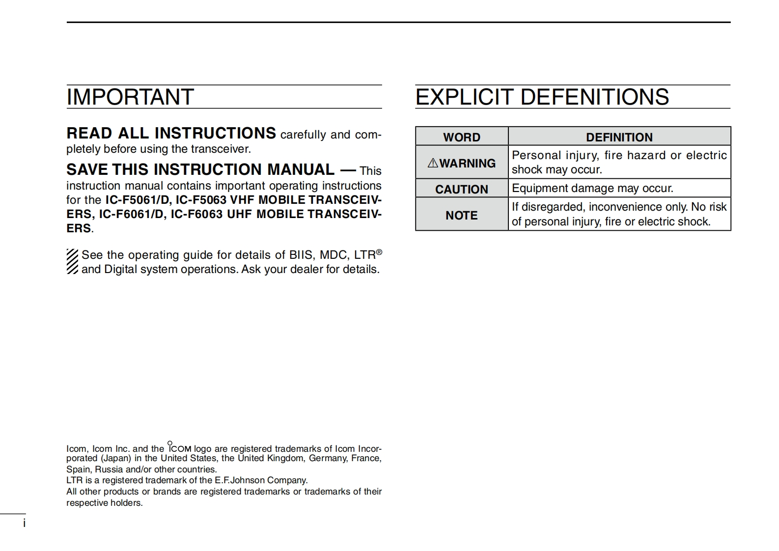 IC-F5061_F6061-操作说明书手册找手册网32天前发布关注私信0.95MB24页044IC-F5061_F6061-操作说明书手册此内容为付费资源,请付费后查看¥19¥21黄金会员免费钻石会员免费登录购买付费资源 第1页 / 共24页 第2页 / 共24页 第3页 / 共24页 第4页 / 共24页 第5页 / 共24页 第6页 / 共24页 第7页 / 共24页 第8页 / 共24页 第9页 / 共24页 第10页 / 共24页 试读已结束,还剩14页,您可下载完整版后进行离线阅读 THE END艾可慕 文本预览 COMINSTRUCTION MANUALVHF MOBILE TRANSCEIVER1e-83DUHF MOBILE TRANSCEIVERIcom Inc.IE-F6883DP4Icom Inc. 查看更多 收起部分 喜欢就支持一下吧收藏