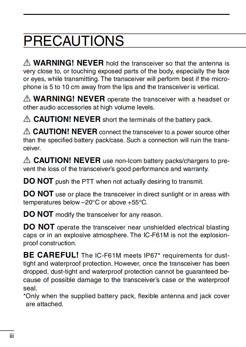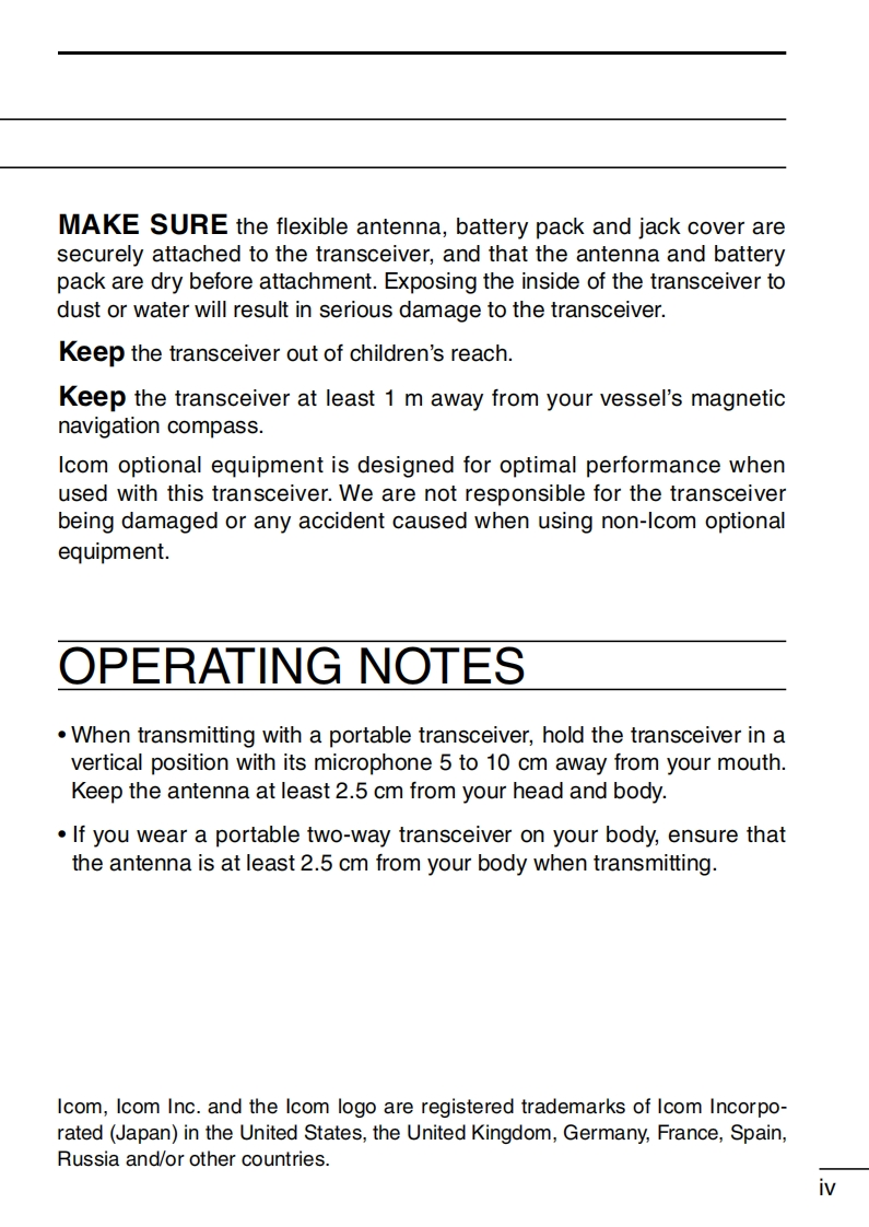 IC-F61M_Manual操作说明书手册找手册网32天前发布关注私信1.76MB56页050IC-F61M_Manual操作说明书手册此内容为付费资源,请付费后查看¥19¥21黄金会员免费钻石会员免费登录购买付费资源 第1页 / 共56页 第2页 / 共56页 第3页 / 共56页 第4页 / 共56页 第5页 / 共56页 第6页 / 共56页 第7页 / 共56页 第8页 / 共56页 第9页 / 共56页 第10页 / 共56页 试读已结束,还剩46页,您可下载完整版后进行离线阅读 THE END艾可慕 文本预览 COMINSTRUCTION MANUALUHF MARINE TRANSCEIVERIC-F61MIC-F6IMIcom Inc.WATERPROOFPo P:P2 PaAIcom Inc.ICOM 查看更多 收起部分 喜欢就支持一下吧收藏