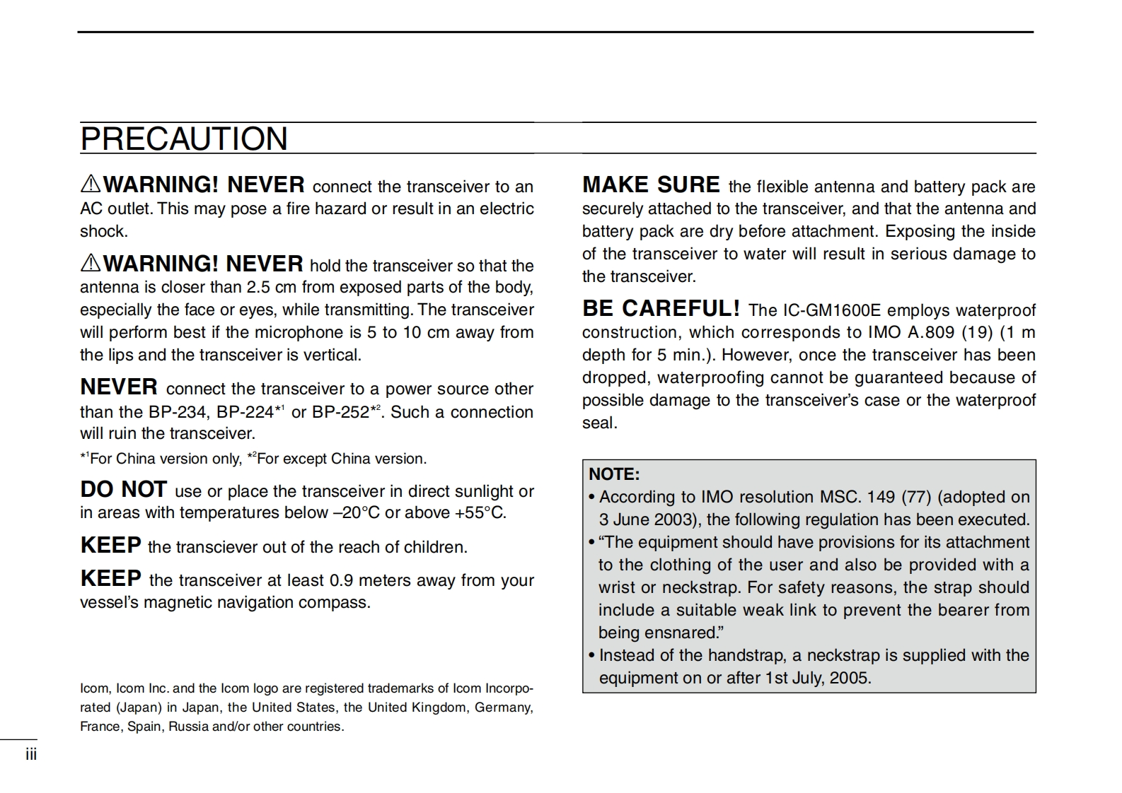 IC-GM1600E_Manual操作说明书手册找手册网32天前发布关注私信1.22MB32页044IC-GM1600E_Manual操作说明书手册此内容为付费资源,请付费后查看¥19¥21黄金会员免费钻石会员免费登录购买付费资源 第1页 / 共32页 第2页 / 共32页 第3页 / 共32页 第4页 / 共32页 第5页 / 共32页 第6页 / 共32页 第7页 / 共32页 第8页 / 共32页 第9页 / 共32页 第10页 / 共32页 试读已结束,还剩22页,您可下载完整版后进行离线阅读 THE END艾可慕 文本预览 INSTRUCTION MANUALSURVIVAL CRAFT 2-WAY RADIOIC-GM1600ECHGMDSSIcom Inc. 查看更多 收起部分 喜欢就支持一下吧收藏