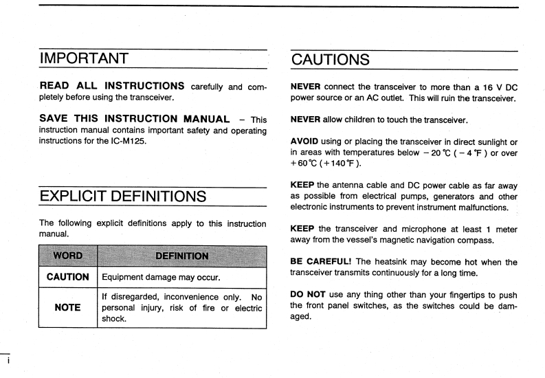 IC-M125_Manual操作说明书手册找手册网31天前发布关注私信5.05MB36页027IC-M125_Manual操作说明书手册此内容为付费资源,请付费后查看¥19¥21黄金会员免费钻石会员免费登录购买付费资源 第1页 / 共36页 第2页 / 共36页 第3页 / 共36页 第4页 / 共36页 第5页 / 共36页 第6页 / 共36页 第7页 / 共36页 第8页 / 共36页 第9页 / 共36页 第10页 / 共36页 试读已结束,还剩26页,您可下载完整版后进行离线阅读 THE END艾可慕 文本预览 COMINSTRUCTION MANUALVHF MARINE TRANSCEIVERIC-M125o】Icom Inc. 查看更多 收起部分 喜欢就支持一下吧收藏