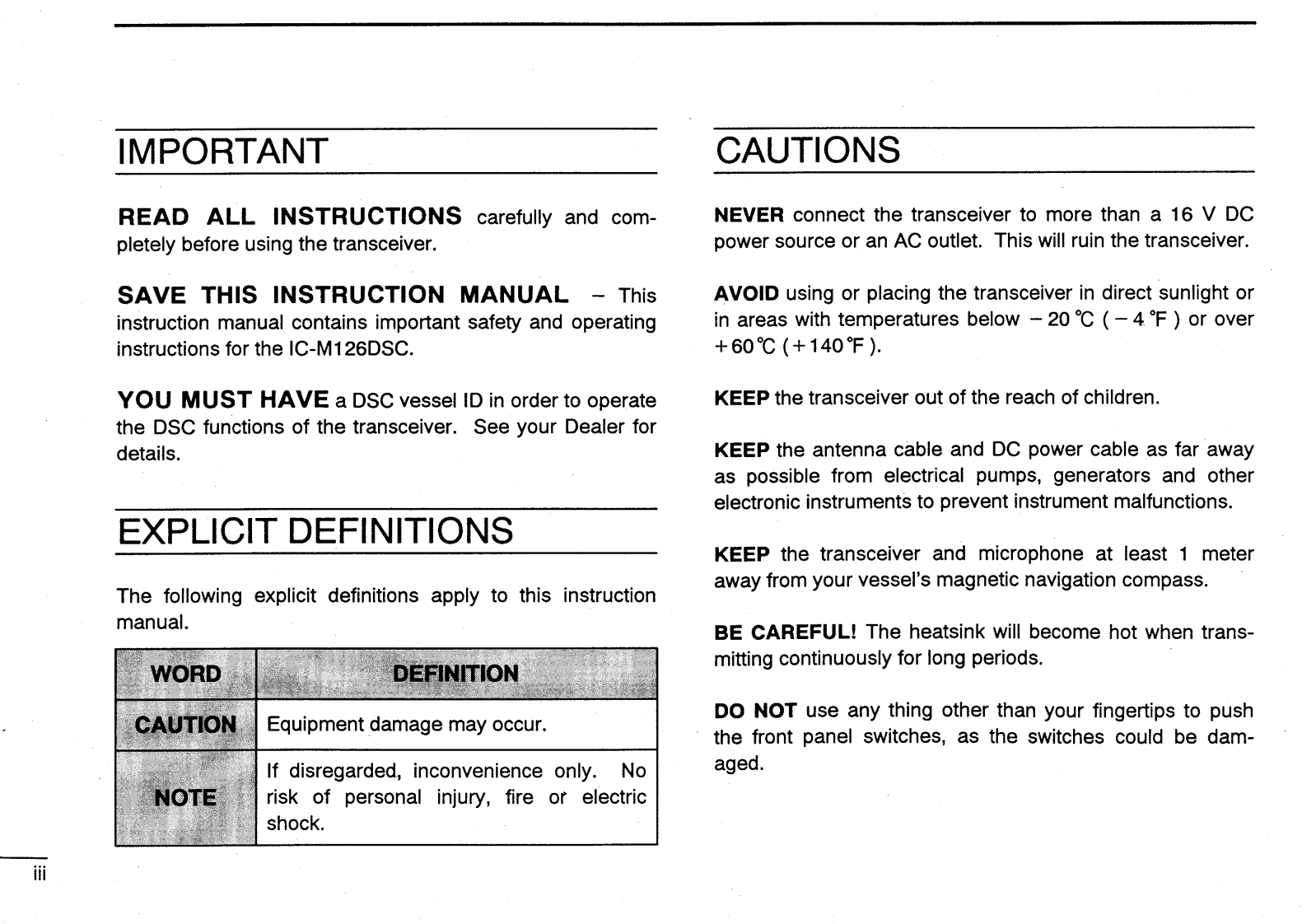 IC-M126DSC_Manual操作说明书手册找手册网31天前发布关注私信3.85MB48页038IC-M126DSC_Manual操作说明书手册此内容为付费资源,请付费后查看¥19¥21黄金会员免费钻石会员免费登录购买付费资源 第1页 / 共48页 第2页 / 共48页 第3页 / 共48页 第4页 / 共48页 第5页 / 共48页 第6页 / 共48页 第7页 / 共48页 第8页 / 共48页 第9页 / 共48页 第10页 / 共48页 试读已结束,还剩38页,您可下载完整版后进行离线阅读 THE END艾可慕 文本预览 ICOMINSTRUCTION MANUALVHF MARINE TRANSCEIVER(U.S.A.version)IC-M126DSCR IC-MI26DSw xNT/USAEMERIcom Inc. 查看更多 收起部分 喜欢就支持一下吧收藏