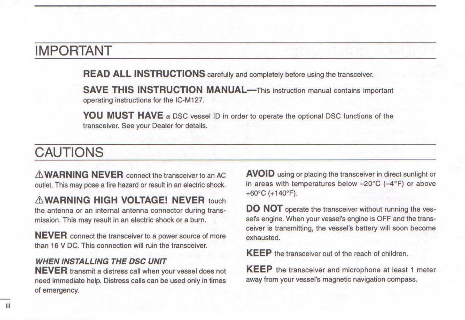 IC-M127_Manual操作说明书手册找手册网31天前发布关注私信10.72MB48页040IC-M127_Manual操作说明书手册此内容为付费资源,请付费后查看¥19¥21黄金会员免费钻石会员免费登录购买付费资源 第1页 / 共48页 第2页 / 共48页 第3页 / 共48页 第4页 / 共48页 第5页 / 共48页 第6页 / 共48页 第7页 / 共48页 第8页 / 共48页 第9页 / 共48页 第10页 / 共48页 试读已结束,还剩38页,您可下载完整版后进行离线阅读 THE END艾可慕 文本预览 COMINSTRUCTION MANUALVHF MARINE TRANSCEIVERIC-M127COMALL INGIcom Inc. 查看更多 收起部分 喜欢就支持一下吧收藏