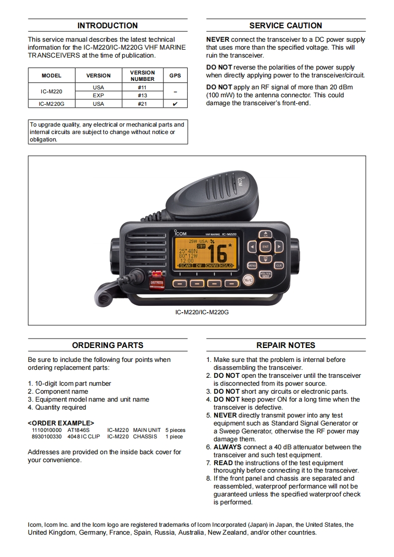 IC-M220_SM_0维修手册找手册网32天前发布关注私信6.54MB33页046IC-M220_SM_0维修手册此内容为付费资源,请付费后查看¥19¥21黄金会员免费钻石会员免费登录购买付费资源 第1页 / 共33页 第2页 / 共33页 第3页 / 共33页 第4页 / 共33页 第5页 / 共33页 第6页 / 共33页 第7页 / 共33页 第8页 / 共33页 第9页 / 共33页 第10页 / 共33页 试读已结束,还剩23页,您可下载完整版后进行离线阅读 THE END艾可慕 文本预览 fcomSERVICEMANUALVHF MARINE TRANSCEIVERS1C-M2201C-M220GS-15506XZ-C1October 2018Icom Inc. 查看更多 收起部分 喜欢就支持一下吧收藏