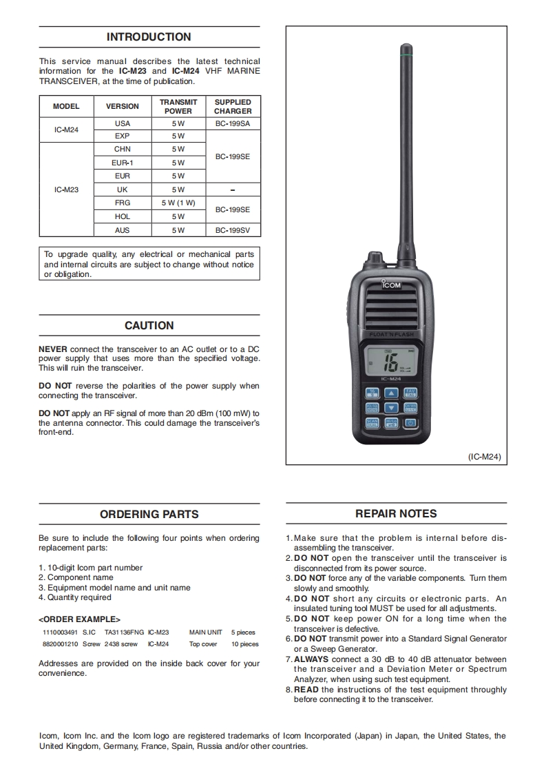 IC-M23-IC-M24-Service-manual维修手册含电器原理图找手册网32天前发布关注私信2.79MB27页023IC-M23-IC-M24-Service-manual维修手册含电器原理图此内容为付费资源,请付费后查看¥19¥21黄金会员免费钻石会员免费登录购买付费资源 第1页 / 共27页 第2页 / 共27页 第3页 / 共27页 第4页 / 共27页 第5页 / 共27页 第6页 / 共27页 第7页 / 共27页 第8页 / 共27页 第9页 / 共27页 第10页 / 共27页 试读已结束,还剩17页,您可下载完整版后进行离线阅读 THE END艾可慕 文本预览 GcoMSERVICEMANUALVHF MARINE TRANSCEIVERIE MS-14720XZ-C1Apr.2011Icom Inc. 查看更多 收起部分 喜欢就支持一下吧收藏