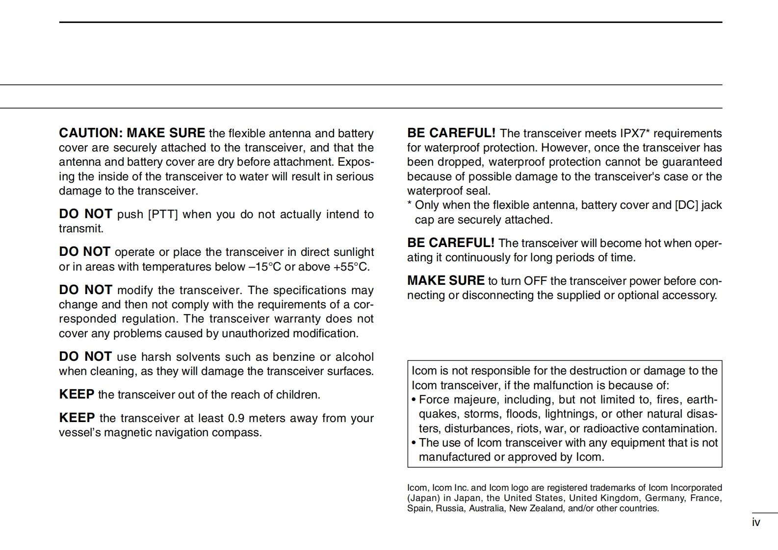 IC-M23-Instruction-manual操作说明书手册找手册网32天前发布关注私信3.05MB36页022IC-M23-Instruction-manual操作说明书手册此内容为付费资源,请付费后查看¥19¥21黄金会员免费钻石会员免费登录购买付费资源 第1页 / 共36页 第2页 / 共36页 第3页 / 共36页 第4页 / 共36页 第5页 / 共36页 第6页 / 共36页 第7页 / 共36页 第8页 / 共36页 第9页 / 共36页 第10页 / 共36页 试读已结束,还剩26页,您可下载完整版后进行离线阅读 THE END艾可慕 文本预览 INSTRUCTION MANUALVHF MARINE TRANSCEIVERC-M23FLOAT'NFLASHA1C-M23四勾离圖可▣圆图回Icom Inc. 查看更多 收起部分 喜欢就支持一下吧收藏