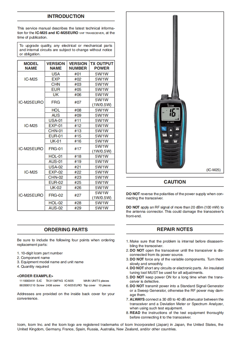 IC-M25-Service-manual维修手册含电器原理图-2找手册网32天前发布关注私信10.70MB27页045IC-M25-Service-manual维修手册含电器原理图-2此内容为付费资源,请付费后查看¥19¥21黄金会员免费钻石会员免费登录购买付费资源 第1页 / 共27页 第2页 / 共27页 第3页 / 共27页 第4页 / 共27页 第5页 / 共27页 第6页 / 共27页 第7页 / 共27页 第8页 / 共27页 第9页 / 共27页 第10页 / 共27页 试读已结束,还剩17页,您可下载完整版后进行离线阅读 THE END艾可慕 文本预览 icOMSERVICEMANUALVHF MARINE TRANSCEIVER1C-M25C-M25EUROS-15208XZ-C1August 2015Icom Inc. 查看更多 收起部分 喜欢就支持一下吧收藏