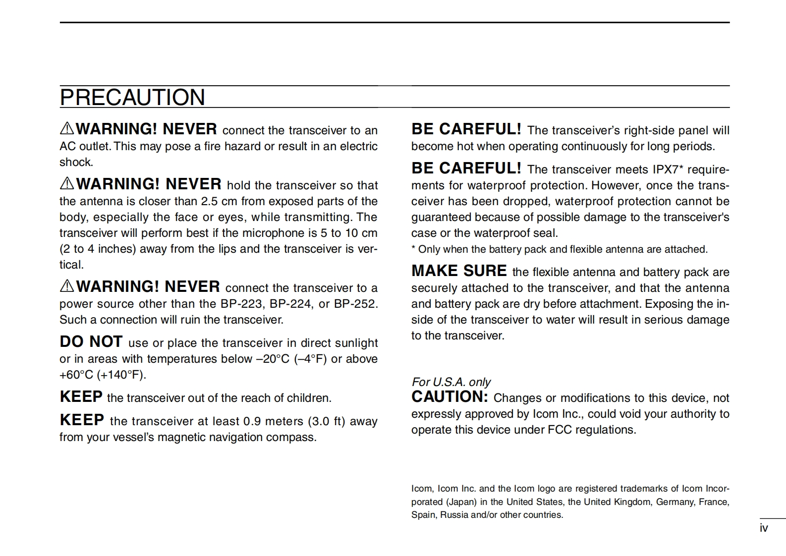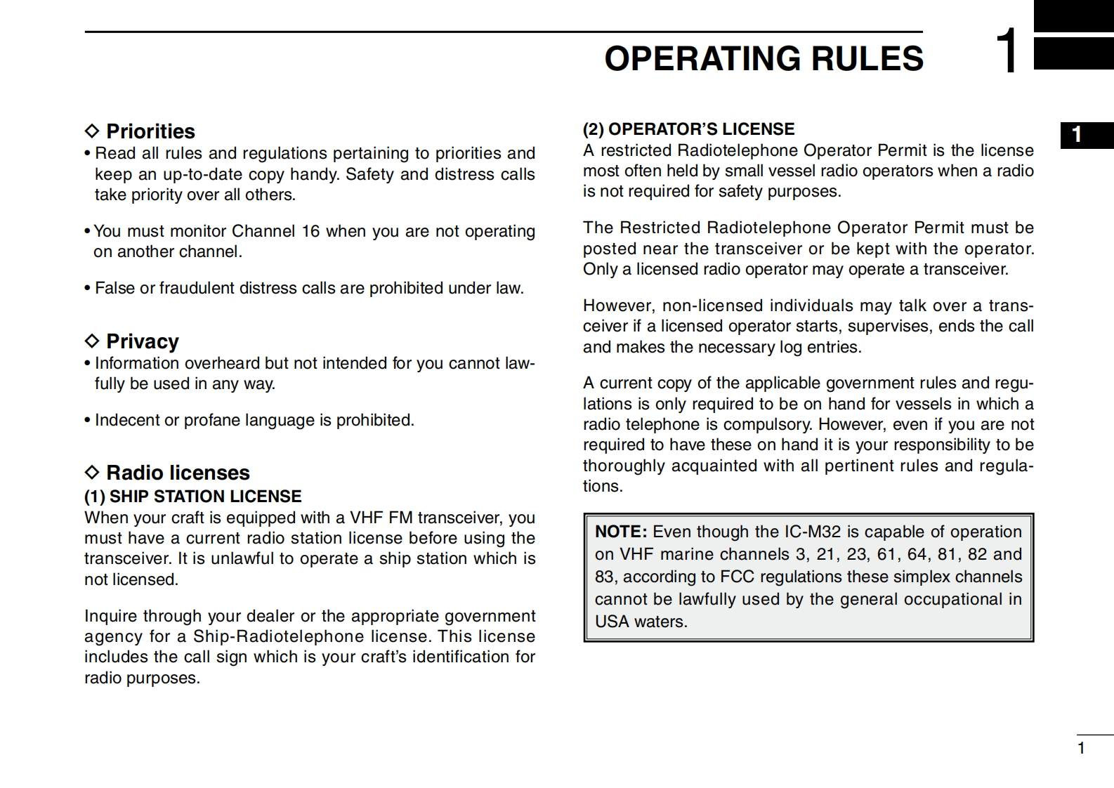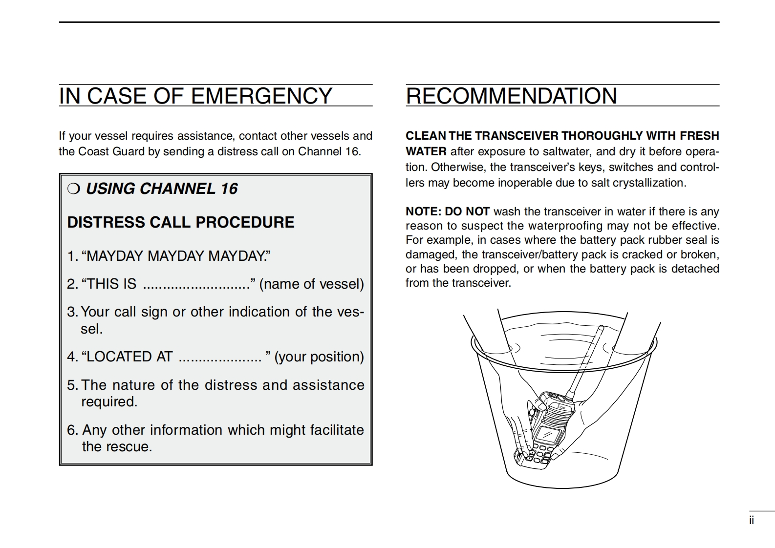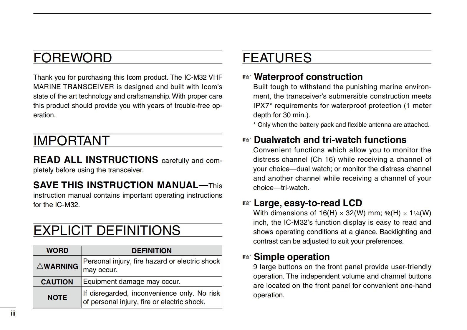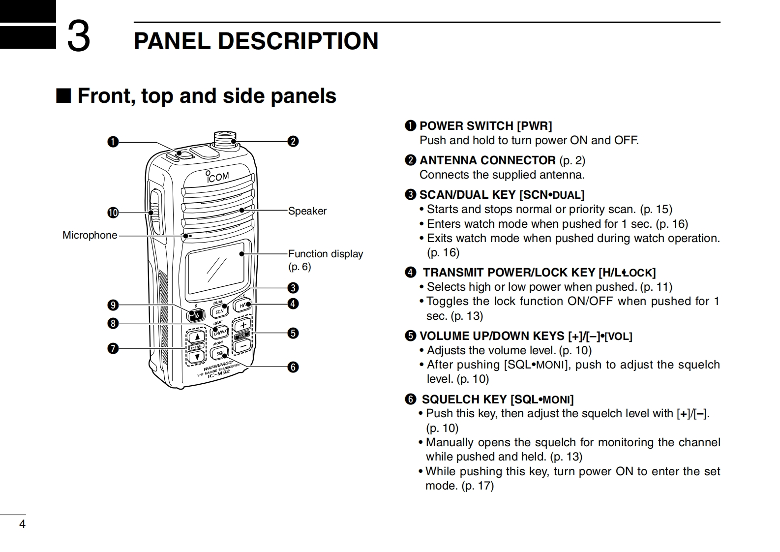 INSTRUCTION MANUALVHF MARINE TRANSCEIVERIC-M32COMThis device complies with Part 15 of the FCCRules.Operation is subject to the conditionthat this device does not cause harmful inter-7ference.DUALLOCK6SCNCH/WX上TAGVOLSQLIcom Inc.吧32