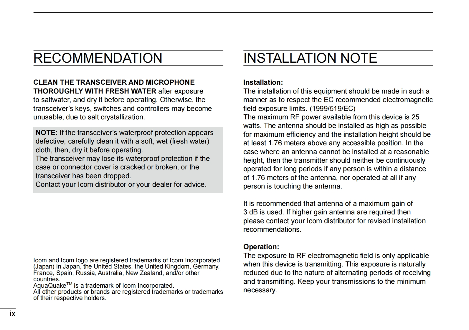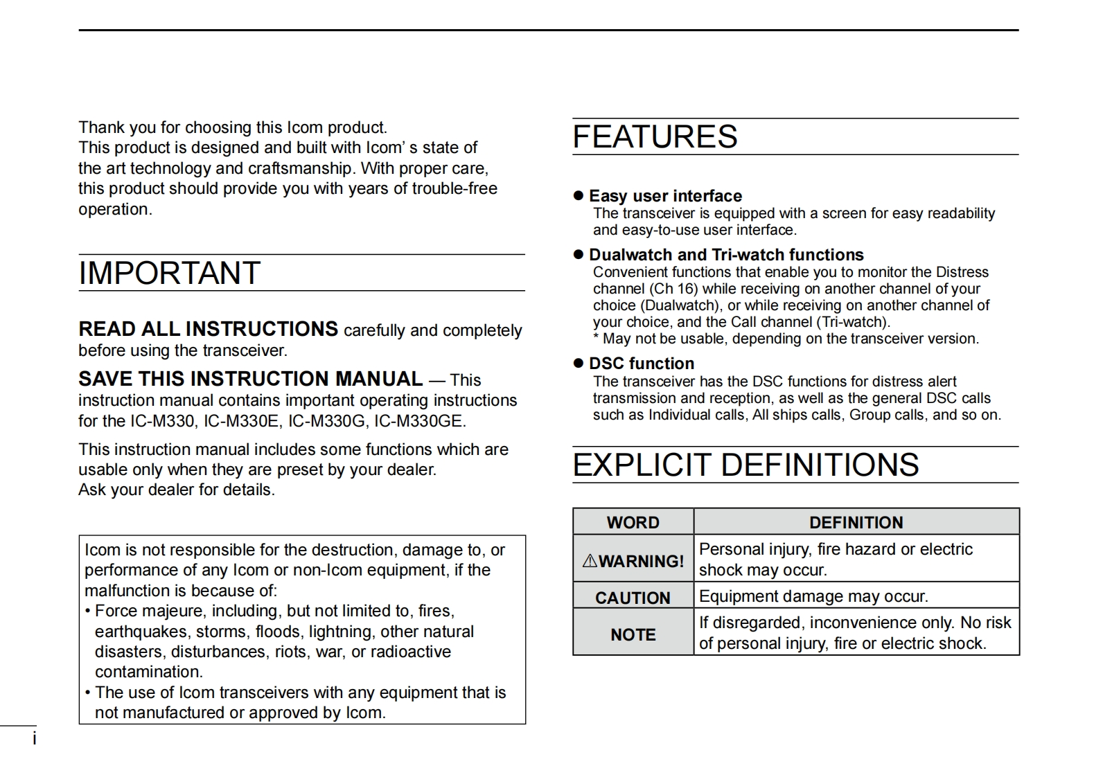 IC-M330GE-Instruction-manual操作说明书手册找手册网31天前发布关注私信10.19MB80页022IC-M330GE-Instruction-manual操作说明书手册此内容为付费资源,请付费后查看¥19¥21黄金会员免费钻石会员免费登录购买付费资源 第1页 / 共80页 第2页 / 共80页 第3页 / 共80页 第4页 / 共80页 第5页 / 共80页 第6页 / 共80页 第7页 / 共80页 第8页 / 共80页 第9页 / 共80页 第10页 / 共80页 试读已结束,还剩70页,您可下载完整版后进行离线阅读 THE END艾可慕 文本预览 COMINSTRUCTION MANUALVHF MARINE TRANSCEIVERSC-M330I-M330EC-M330GICOMVHF MARINE IC-M330C-M330GE盆25mU5A将STBY25°488012例12:00@CAN■DW黑@H/WX HI/LO,16/cDISTRESSIcom Inc. 查看更多 收起部分 喜欢就支持一下吧收藏
