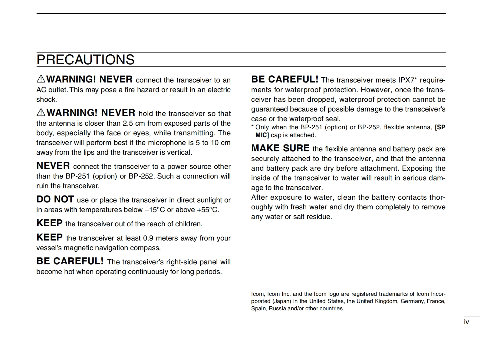 IC-M35_Manual操作说明书手册找手册网31天前发布关注私信2.11MB36页023IC-M35_Manual操作说明书手册此内容为付费资源,请付费后查看¥19¥21黄金会员免费钻石会员免费登录购买付费资源 第1页 / 共36页 第2页 / 共36页 第3页 / 共36页 第4页 / 共36页 第5页 / 共36页 第6页 / 共36页 第7页 / 共36页 第8页 / 共36页 第9页 / 共36页 第10页 / 共36页 试读已结束,还剩26页,您可下载完整版后进行离线阅读 THE END艾可慕 文本预览 COMINSTRUCTION MANUALVHF MARINE TRANSCEIVERIC-M35BUDYANT⊙A雪CH智四CLEAR VOICE BOOSTIcom Inc. 查看更多 收起部分 喜欢就支持一下吧收藏