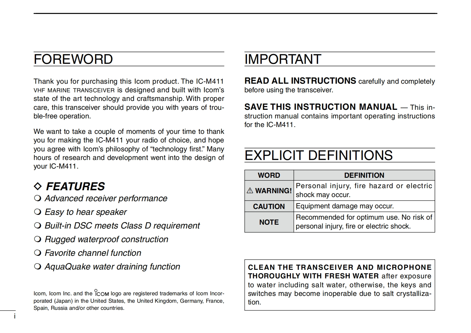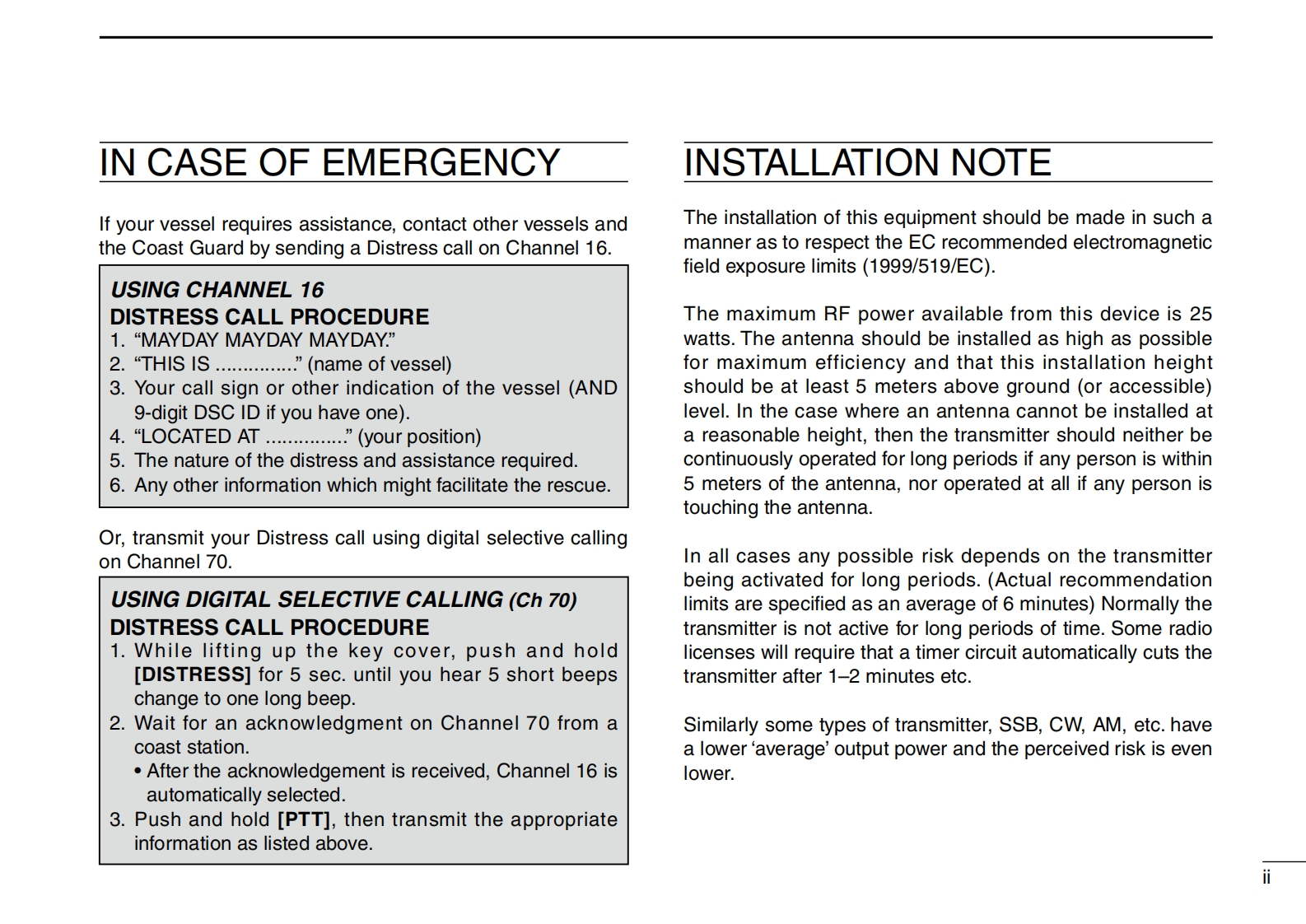 IC-M411_Manual操作说明书手册找手册网32天前发布关注私信3.88MB64页029IC-M411_Manual操作说明书手册此内容为付费资源,请付费后查看¥19¥21黄金会员免费钻石会员免费登录购买付费资源 第1页 / 共64页 第2页 / 共64页 第3页 / 共64页 第4页 / 共64页 第5页 / 共64页 第6页 / 共64页 第7页 / 共64页 第8页 / 共64页 第9页 / 共64页 第10页 / 共64页 试读已结束,还剩54页,您可下载完整版后进行离线阅读 THE END艾可慕 文本预览 INSTRUCTION MANUALVHF MARINE TRANSCEIVERIC-M4T1VHF MARINE IC-M411VOLCALLINGTAGCDUALMMSI16CHMENUGRPTAGDISTRESSSCANCLRENTIcom Inc. 查看更多 收起部分 喜欢就支持一下吧收藏